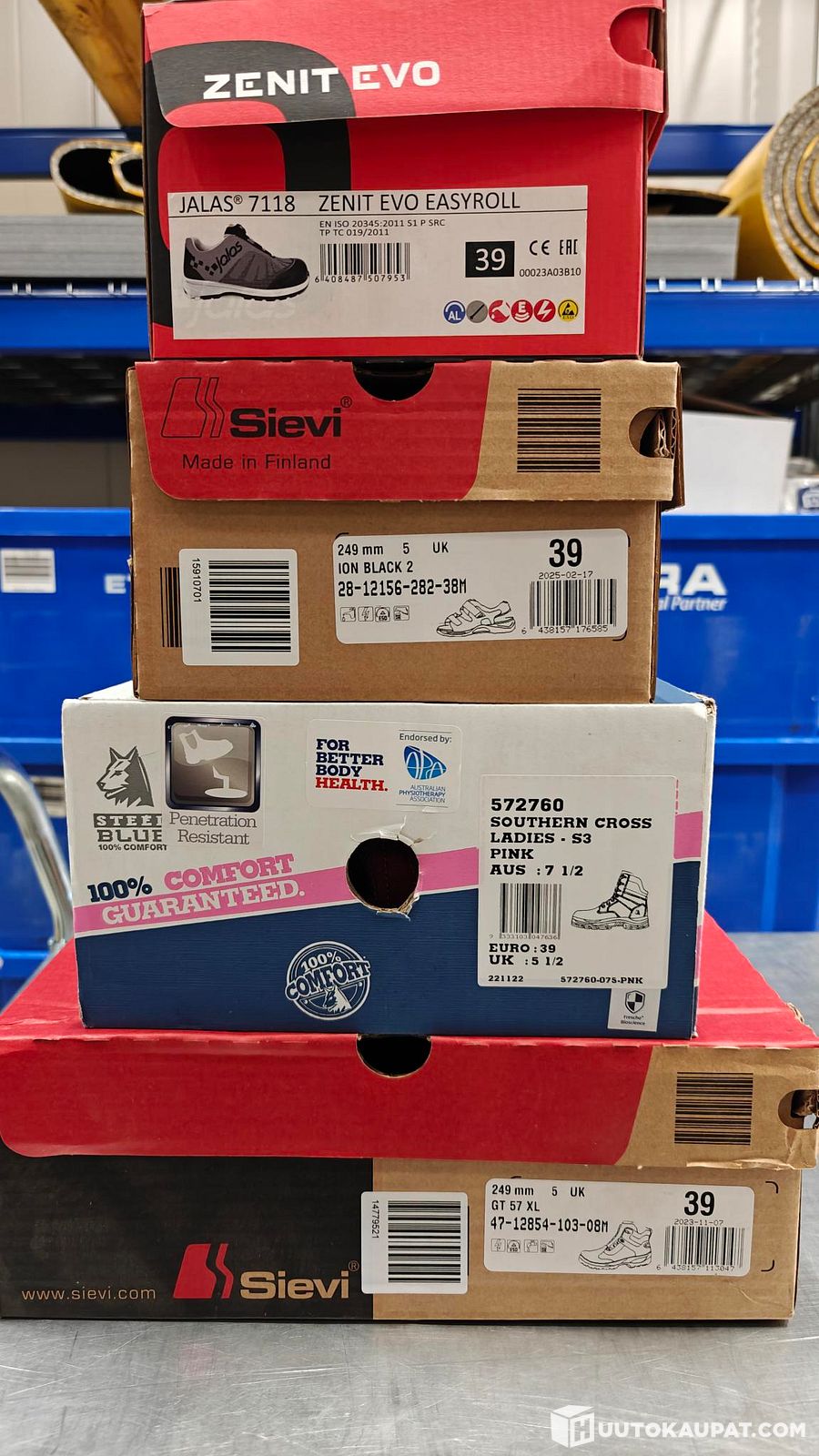 Neljä paria 39 koon Sievi, Jalas sekä Steel Blue turva- sekä työjalkineita, Mikkeli