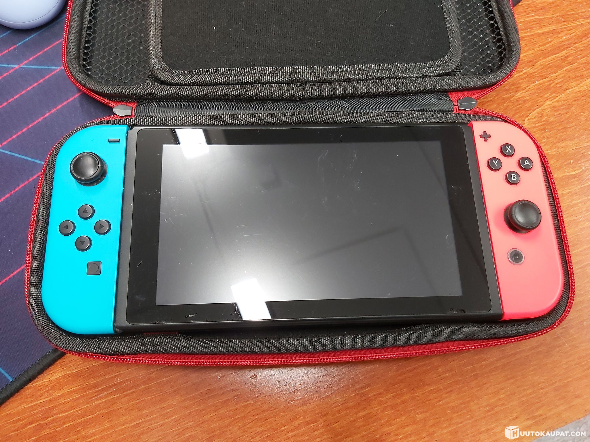 Käytetty, näytössä pintanaarmuja mutta muuten ok. Mukana yksi ohjainpari, suojakotelo ja laturi.