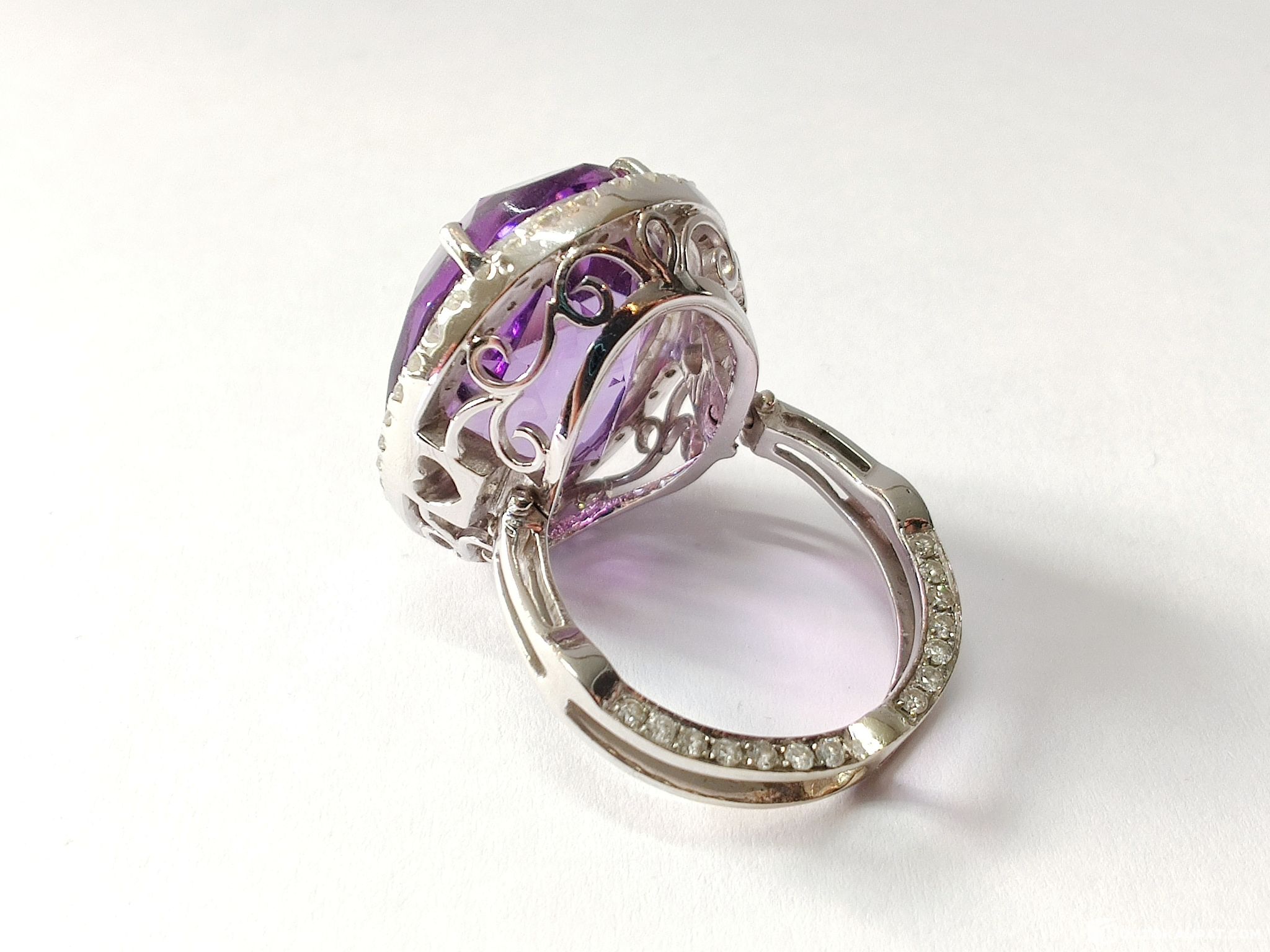 Hurmaavan kaunis ja näyttävä timantein koristeltu ametistisormus/-riipus 750 18k valkokultaa.