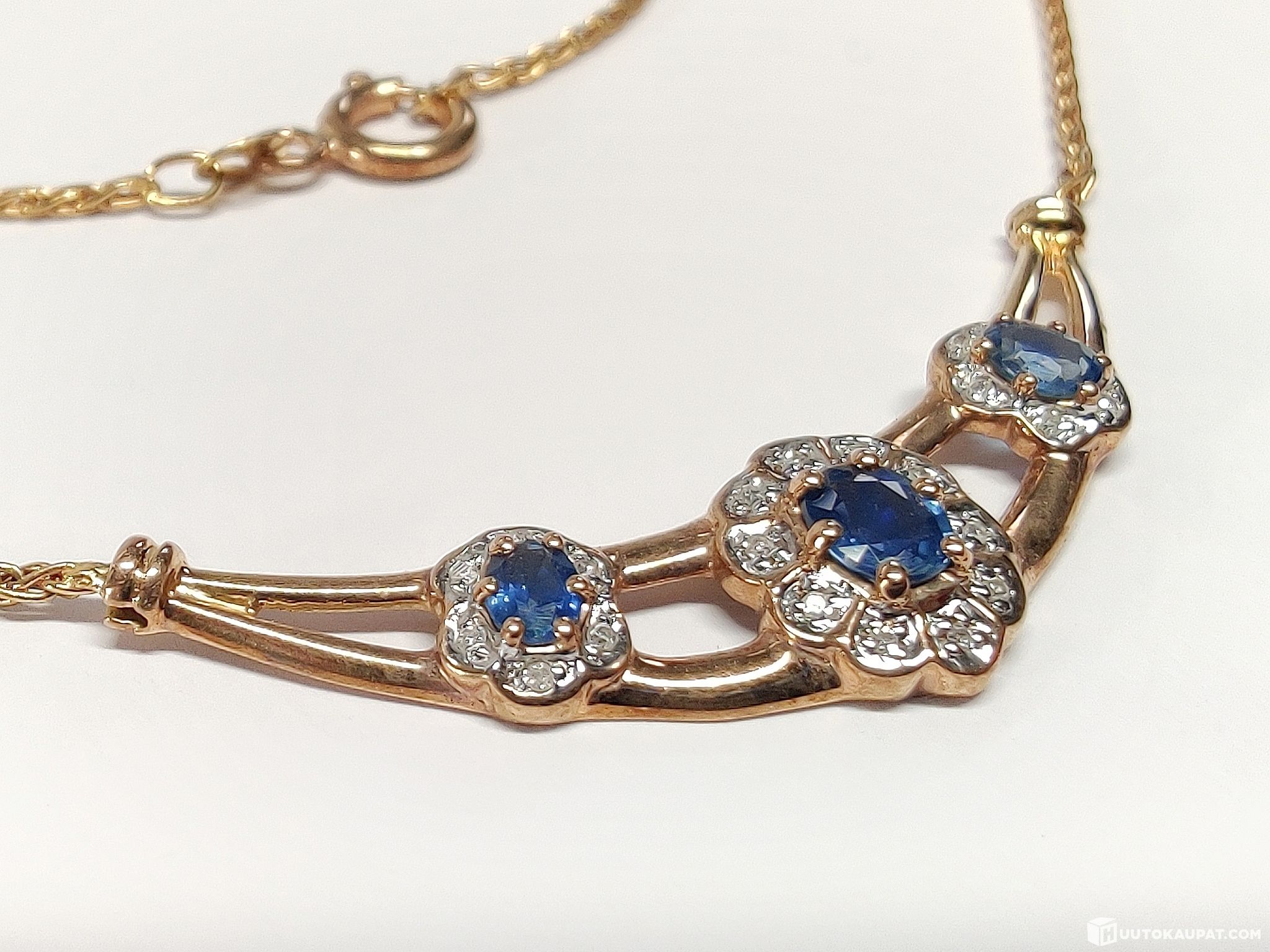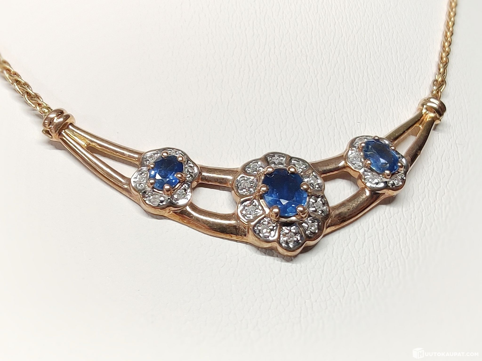 Upea timantti-sinisafiirikaulakoru 585 14k kultaa.