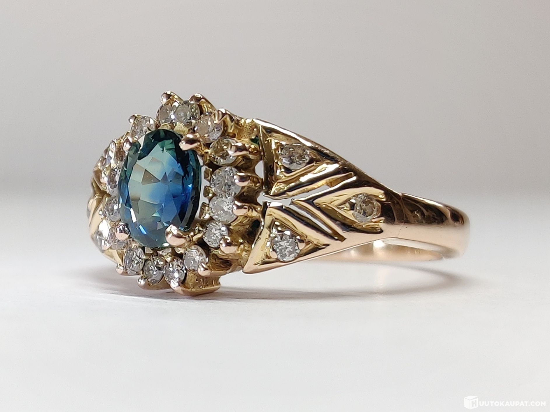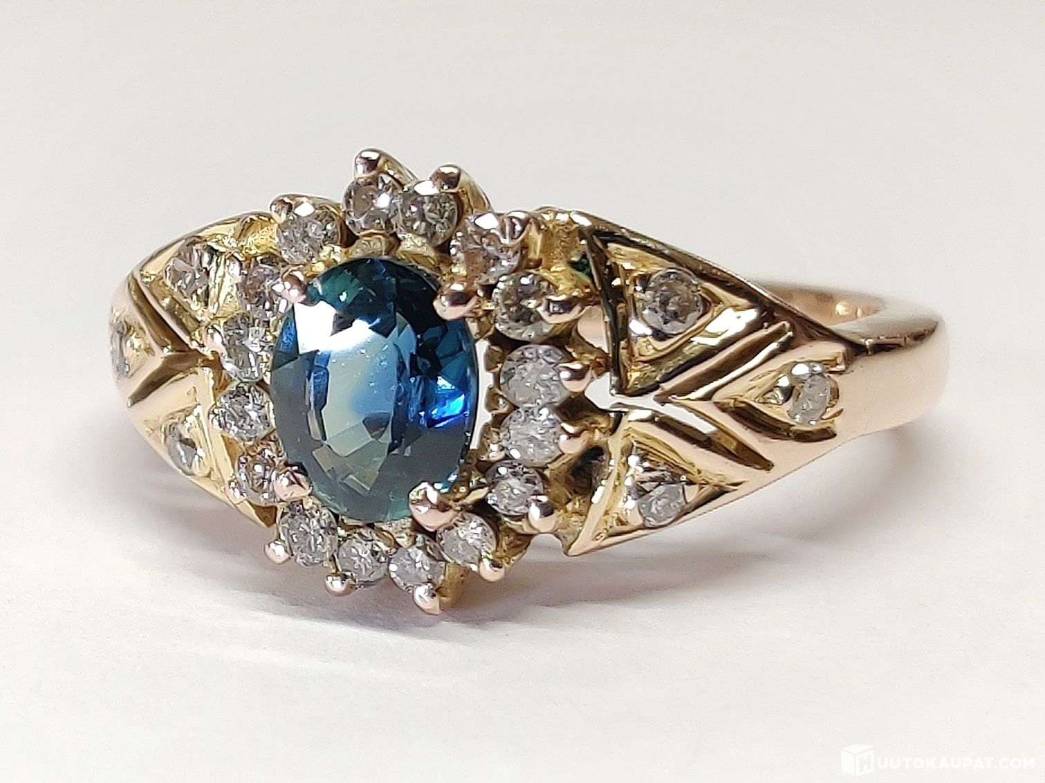 Todella hurmaava timantti-safiirisormus 585 14k kultaa.