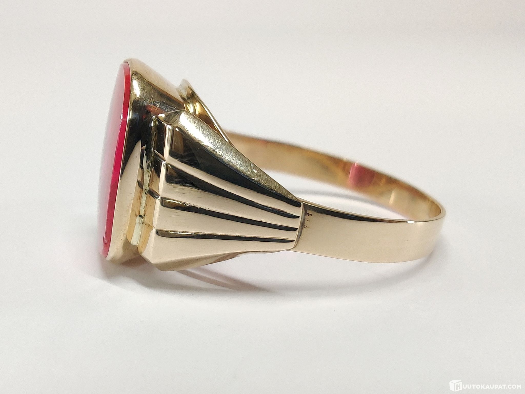 Todella tyylikäs kotimainen kantasormus tummanpunaisella rubiinilla 585 14k kultaa.