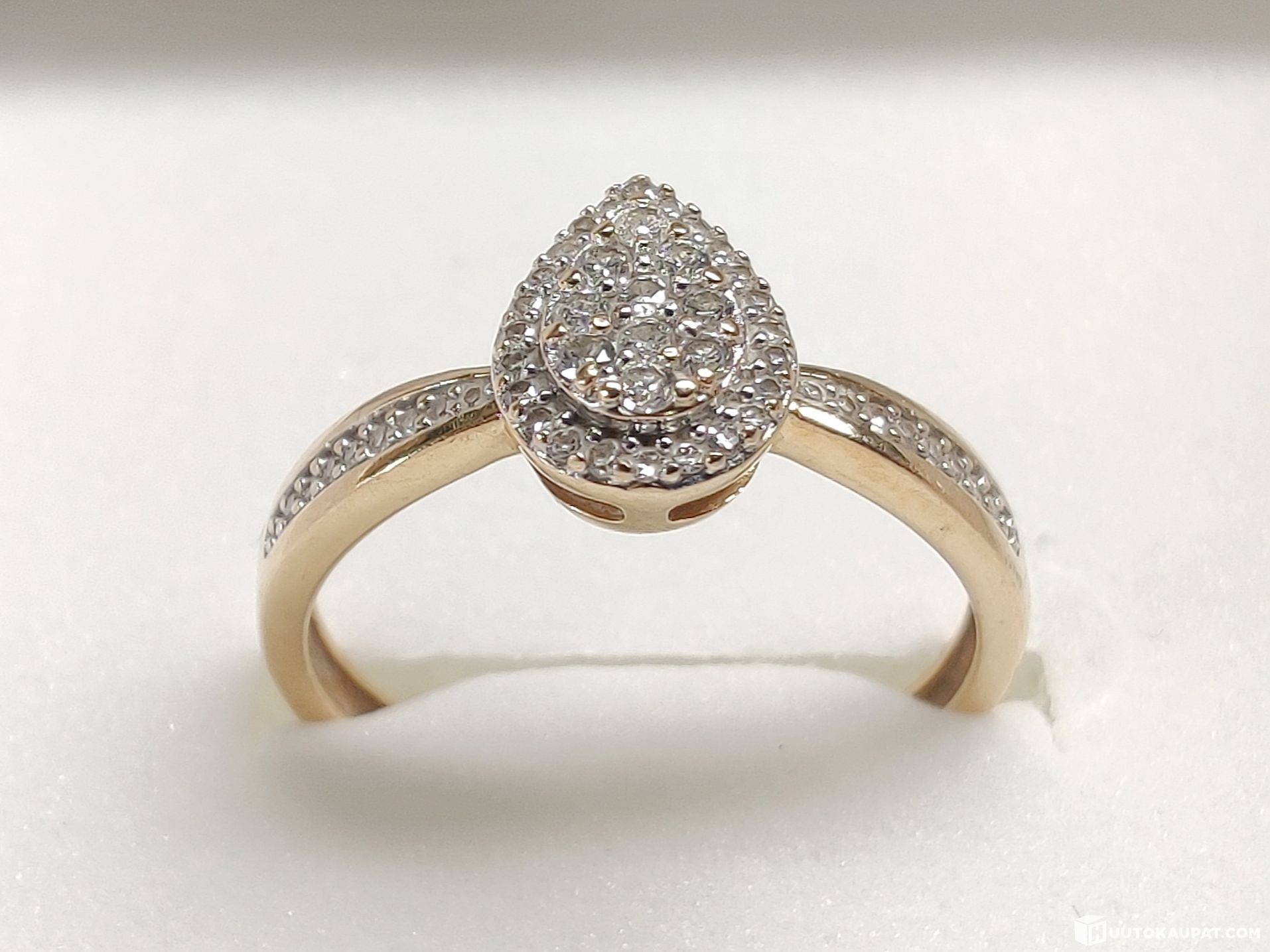 Todella viehättävä pisaranmallinen timanttisormus 585 14k kultaa.