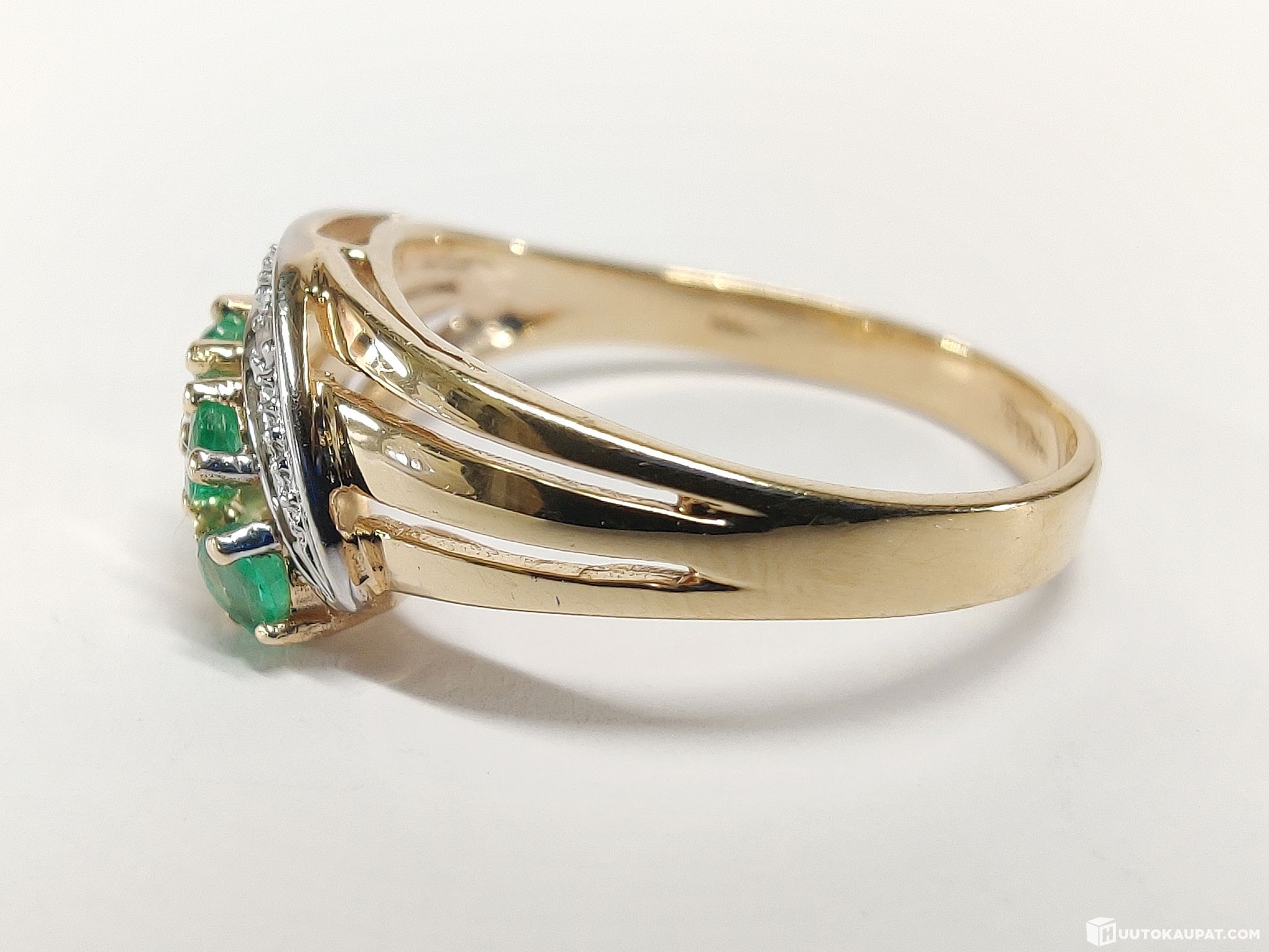 Viehättävä timantti-smaragdisormus 585 14k kultaa.