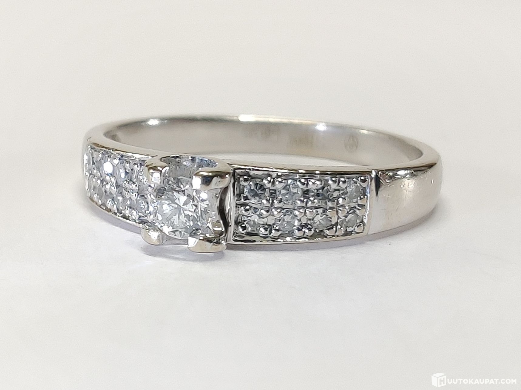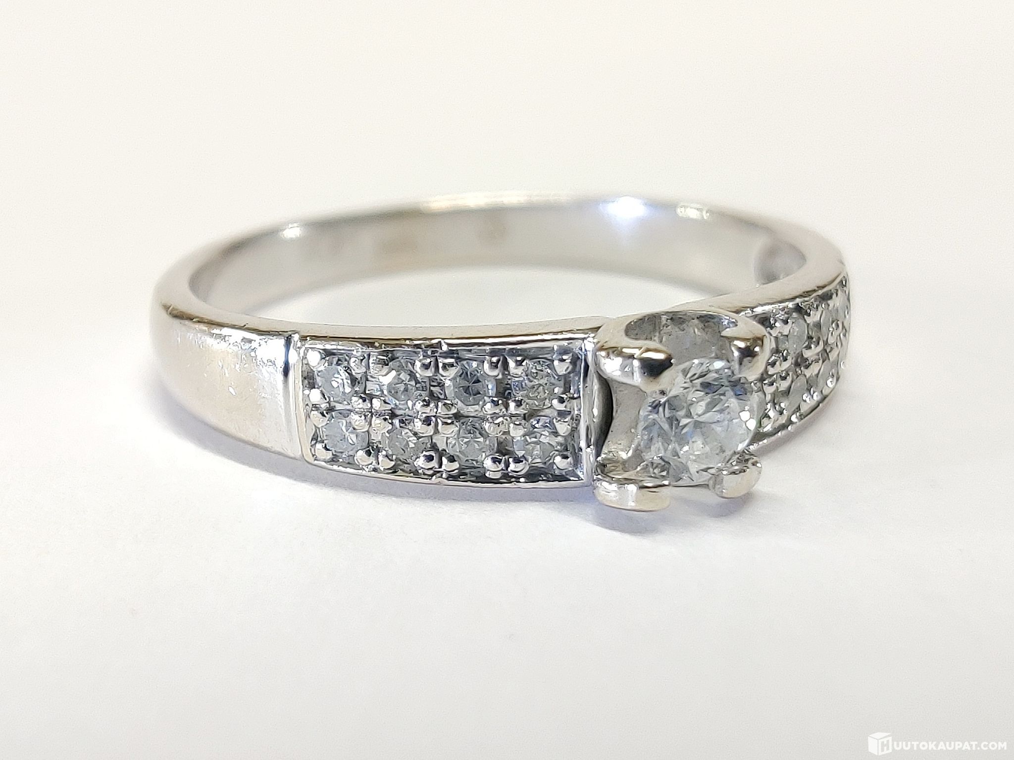 Todella kaunis timanttisormus 585 14k valkokultaa.