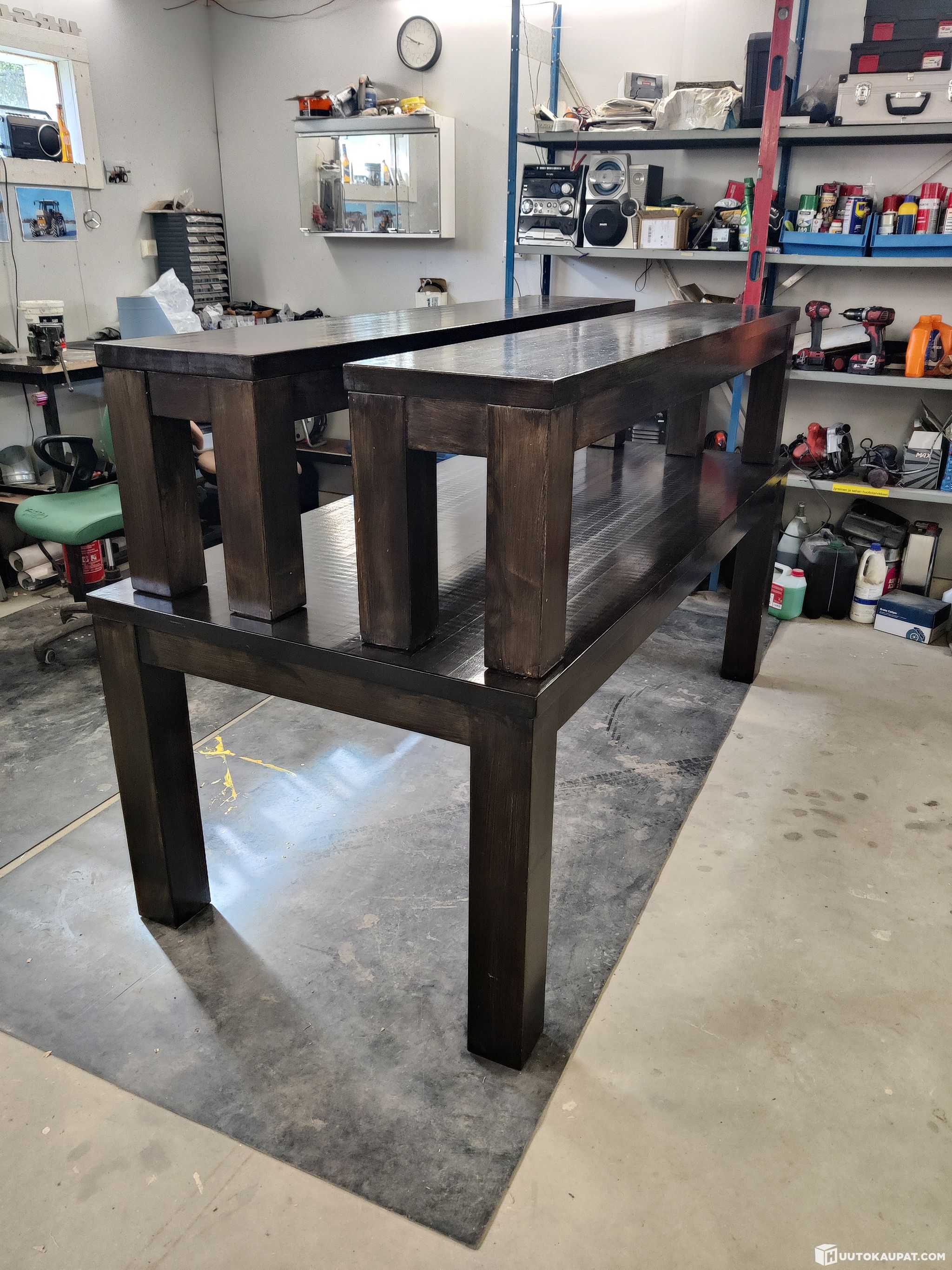 Käytetty, pöydässä ja penkeissä käytössä tullutta hankaumaa ja kulumaa.