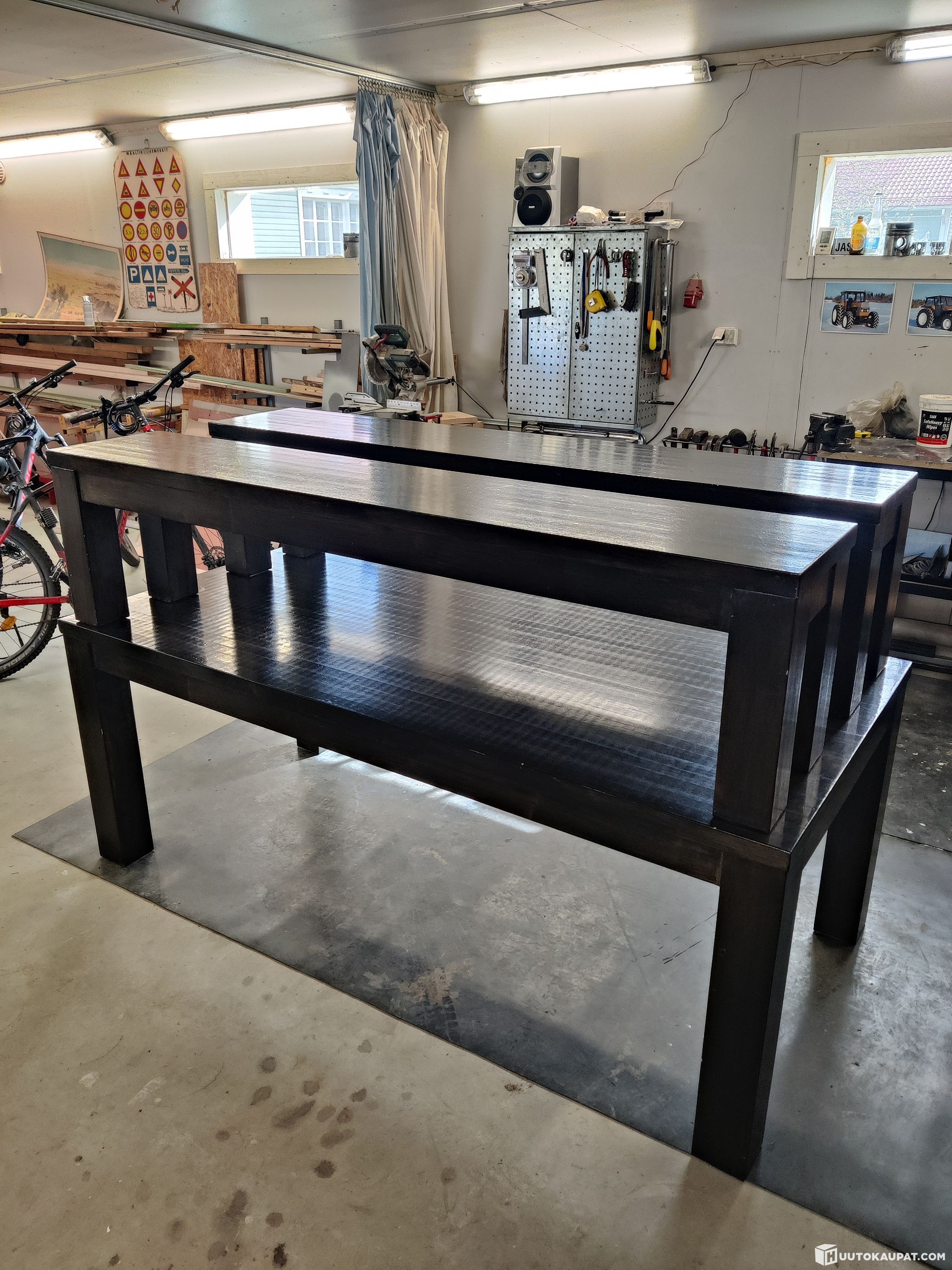 Koivusta tehty tukeva ruokapöytä ja penkit, ei mitään kaupan halppis kamaa.