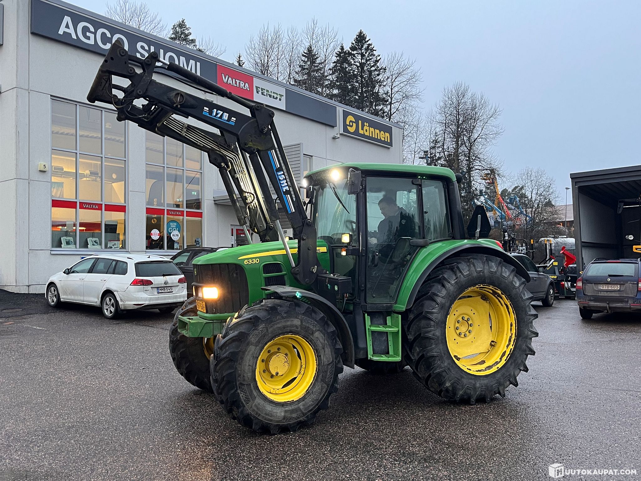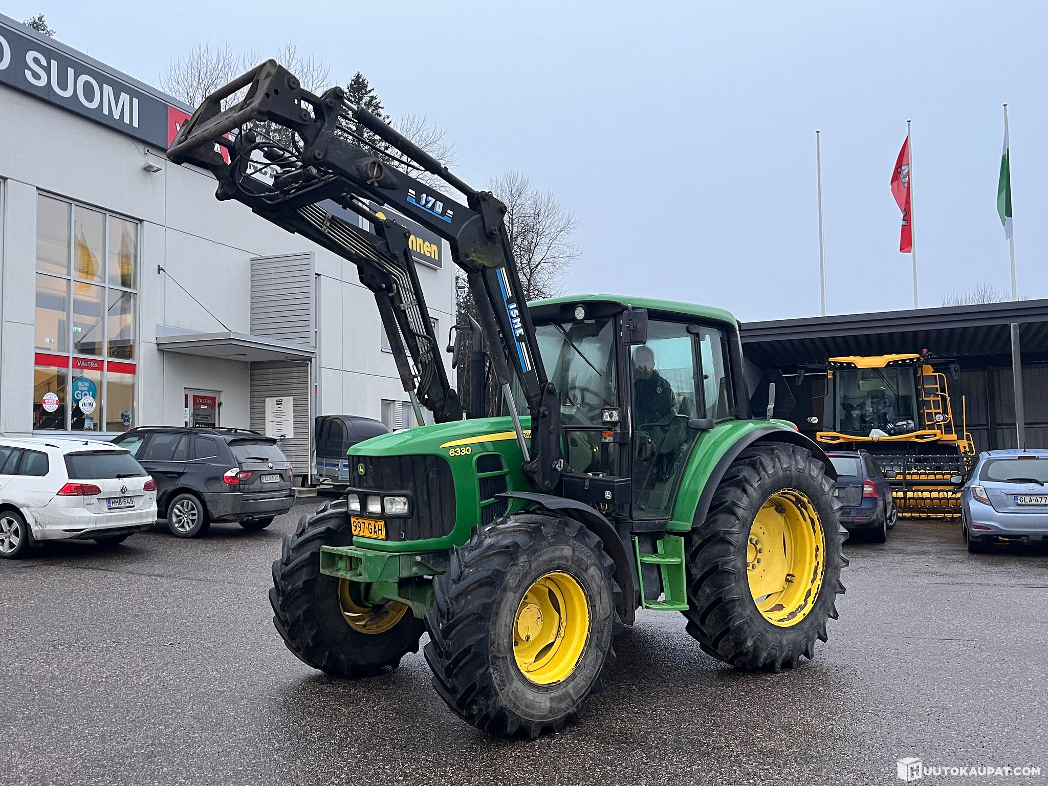 Hyvässä työkunnossa oleva John Deere 6330 kuormaajalla.