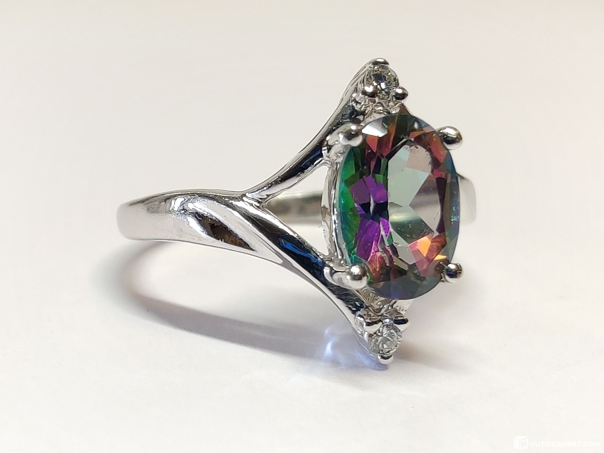 Upea timanttikoristeinen kivisormus 585 14k kultaa. Kivenä mystic topaz.