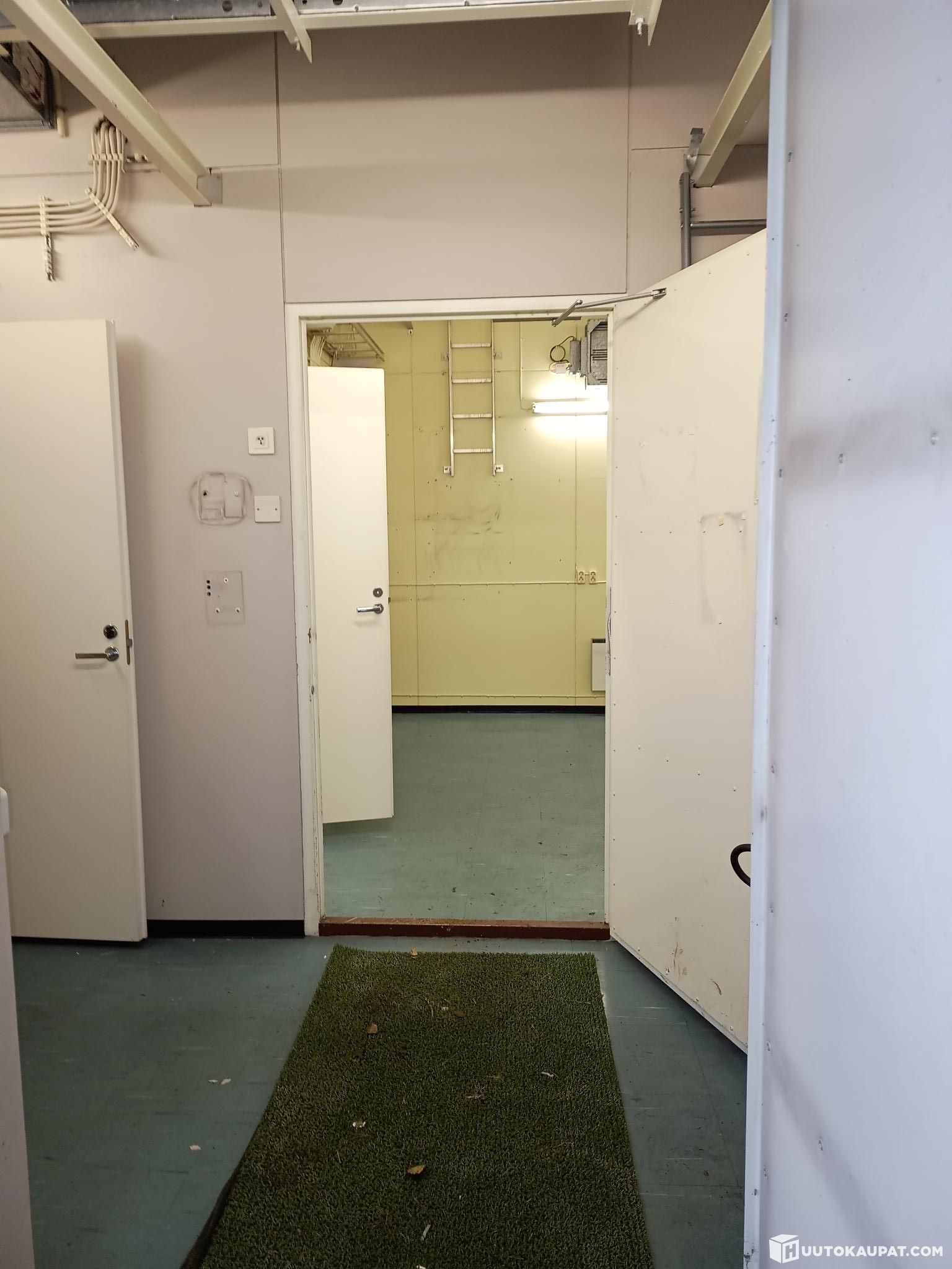 Vapaasti omatoimisesti kohteessa. Kopin lukitus on poistettu poistamalla lukkopesä, ruuvimeisselillä pääsee avaamaan oven.