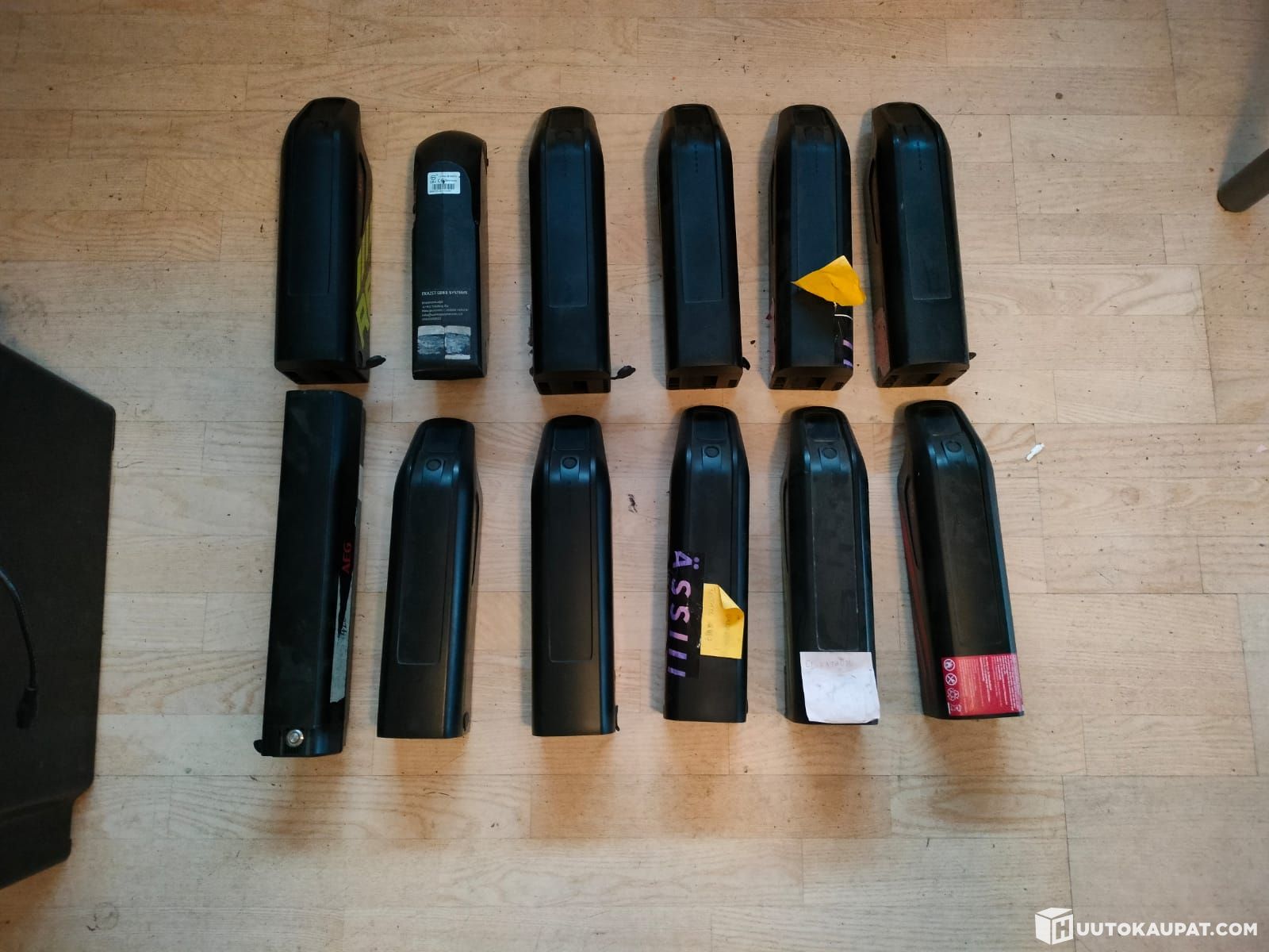 Kuvan mukainen 12kpl erä toimimattomia sähköpyörän akkuja. Akut joko ei ota latausta vastaan tai eivät anna virtaa ulos. Akut vuosilta 2020-2023.