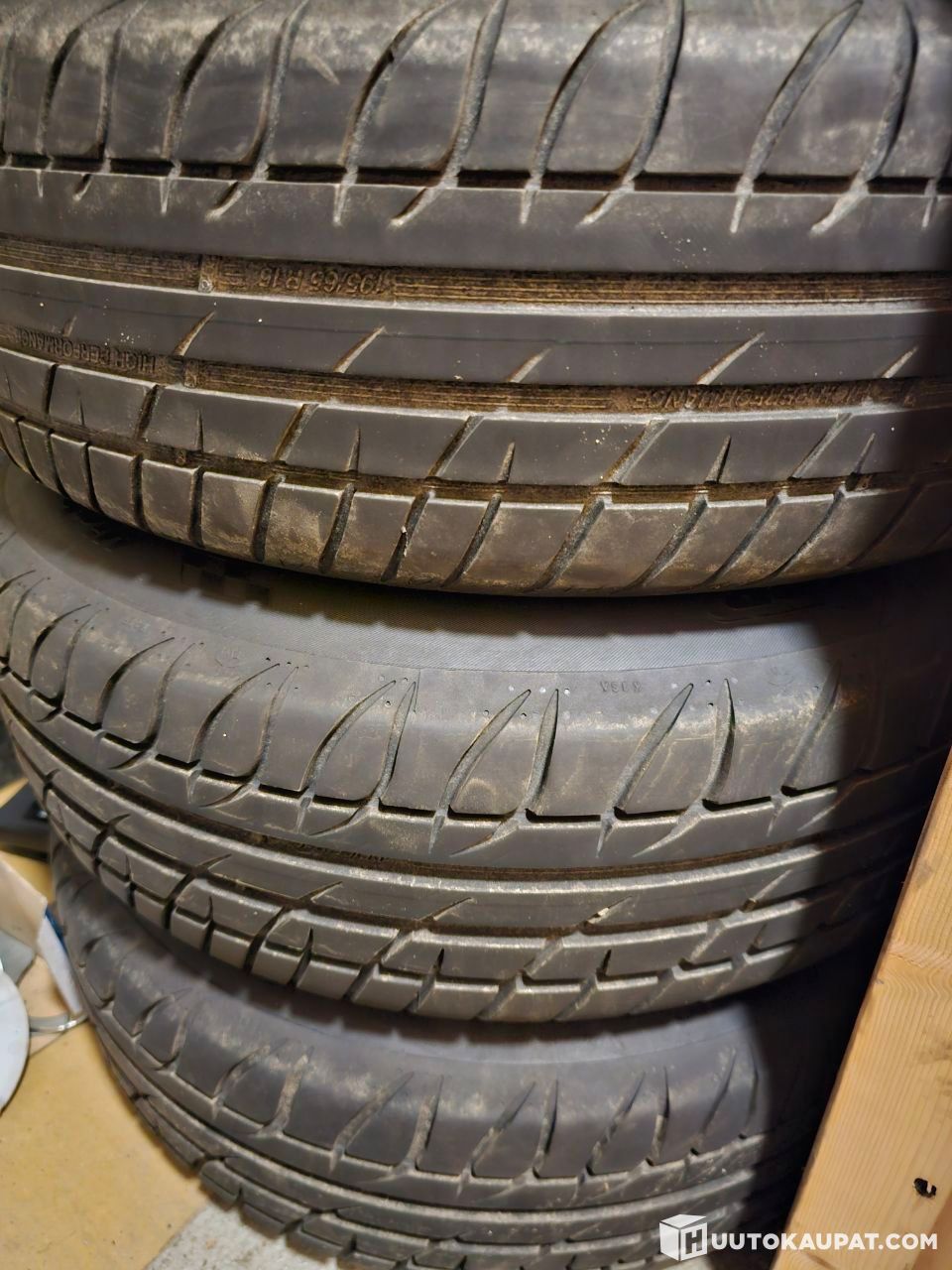 Alla hyväkuntoiset nastarenkaat peltivanteilla