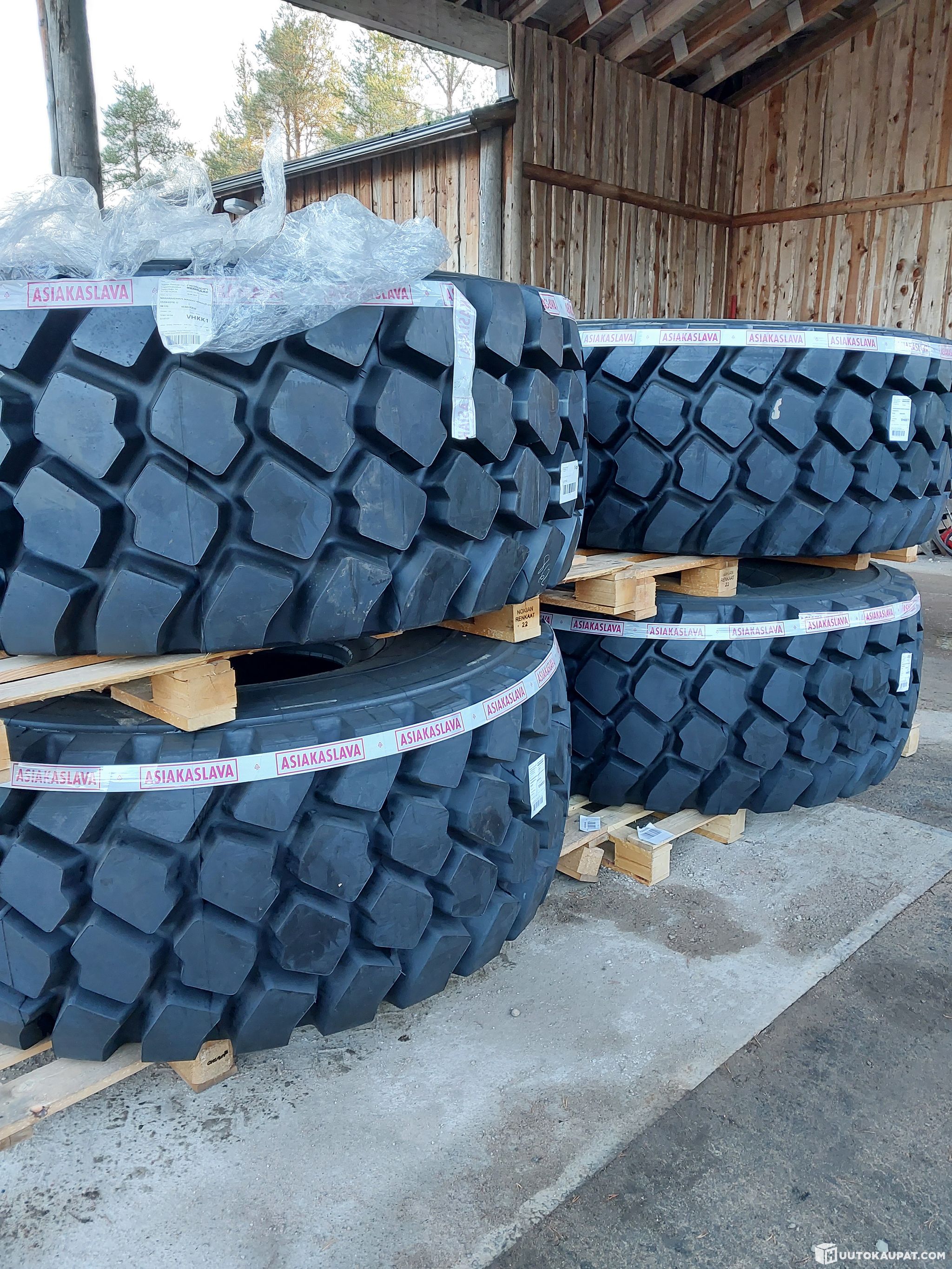 Uudet neljä kpl.Maxam työkoneen renkaat,plus uusi vanne,käyvät esim.Doosan 550 pyöräkoneeseen.
