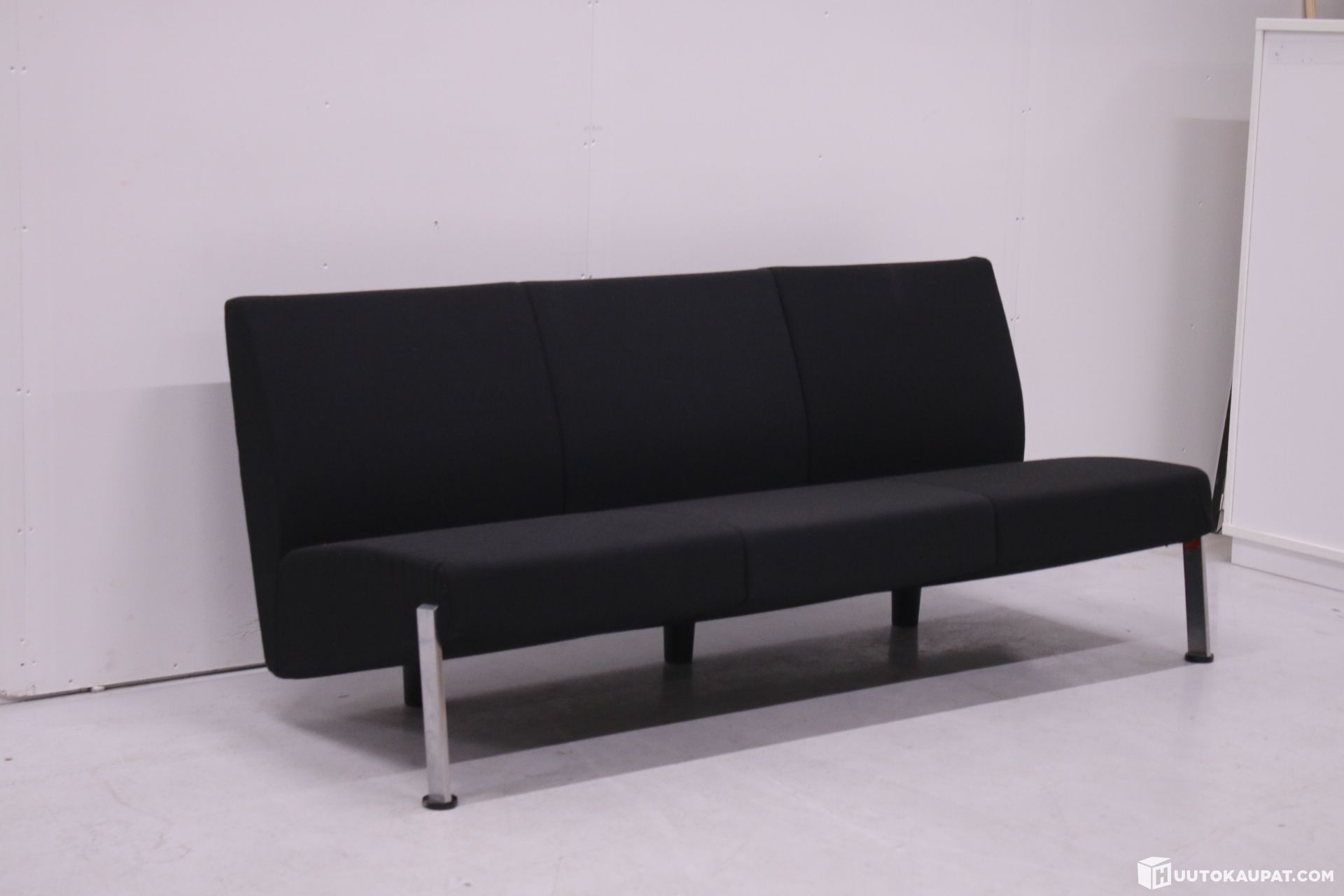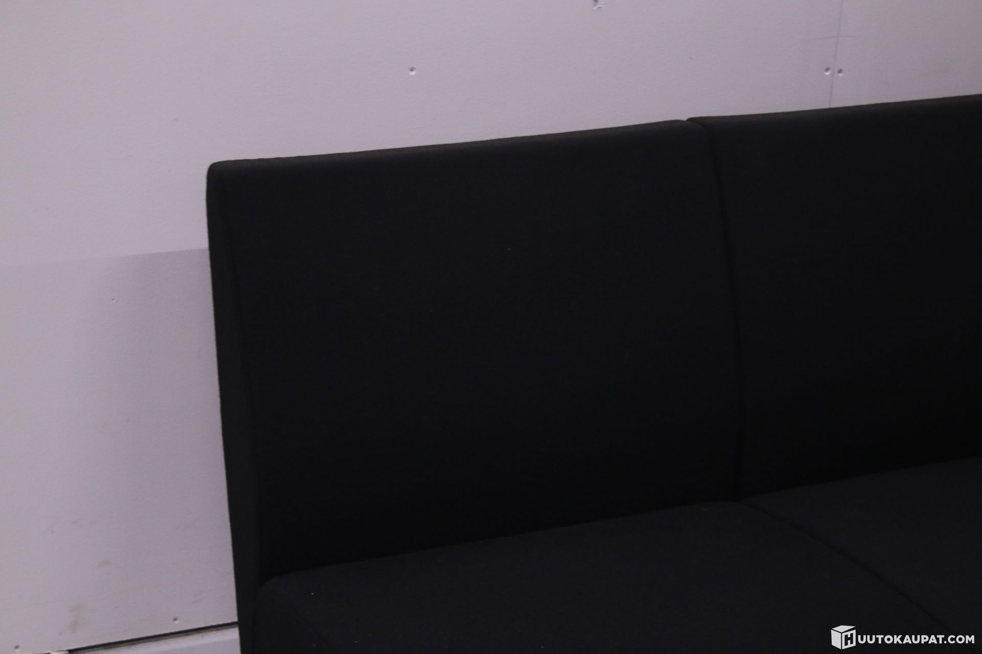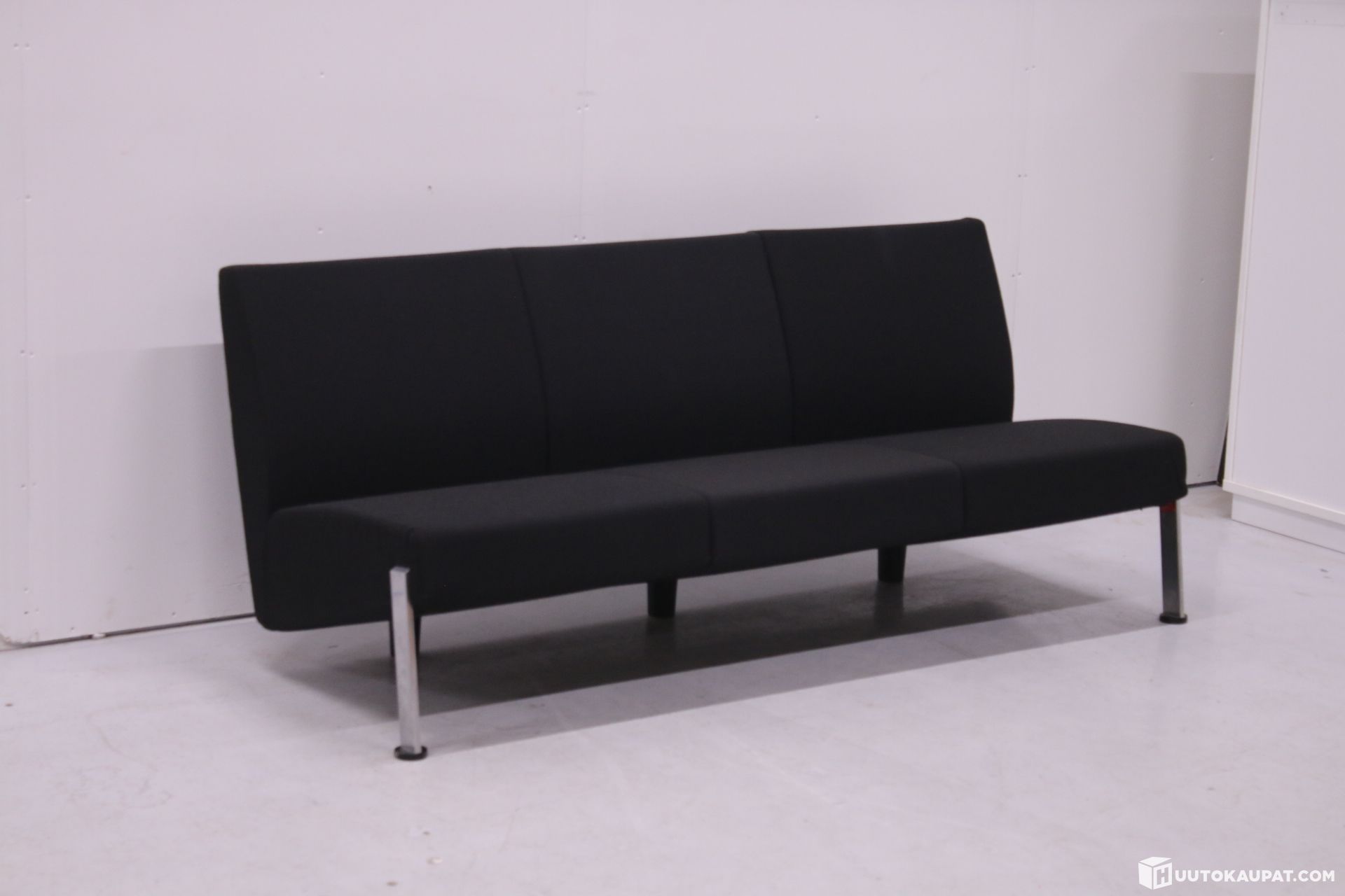 Musta kangasverhoilu ja kromatut jalat luovat modernin ja elegantin ilmeen esimerkiksi aulatiloihin, neuvotteluhuoneisiin tai odotustiloihin.