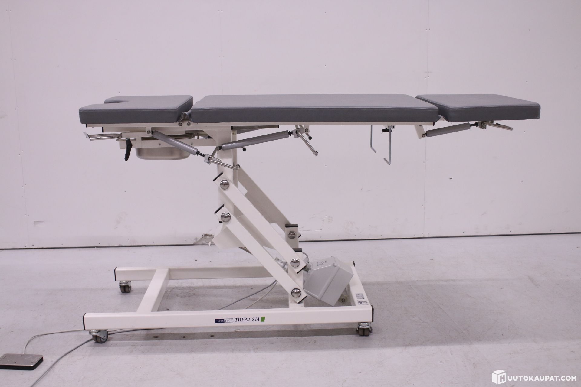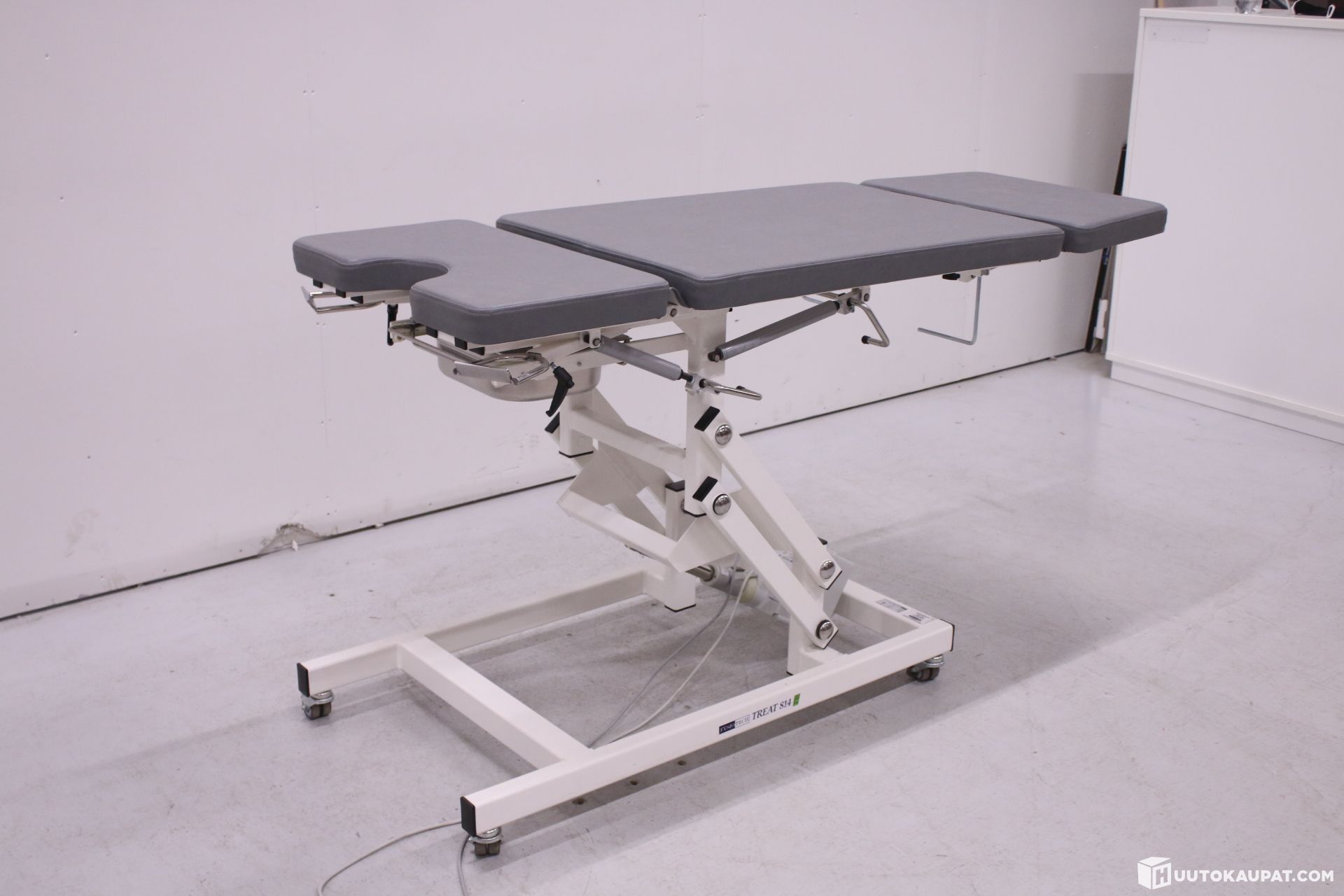 Myynnissä laadukas ja erittäin jämäkkä ammattikäyttöön tarkoitettu sähköisesti säädettävä tutkimuspöytä, valmistaja Oy Gehac Ltd (Treat-tuote), Made in Finland.