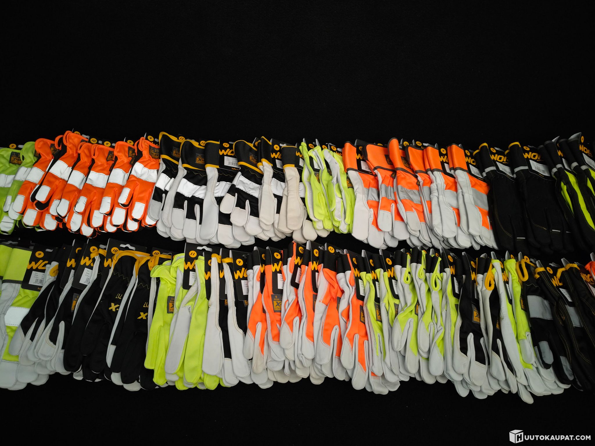 Uudet Worx-merkin työ- ja turvahanskasatsi. Yhteensä 73 paria.