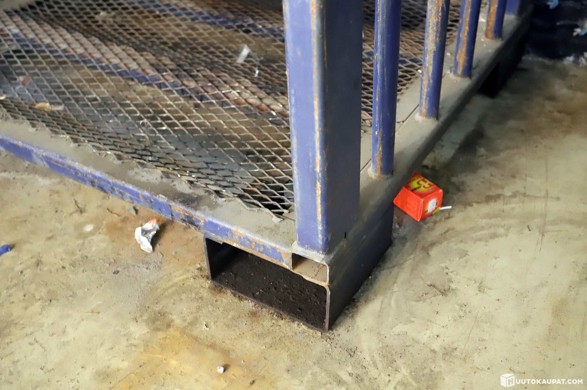 Viereen pääsee ajamaan max 2,1 metriä korkealla kalustolla, sitä korkeammalla kalustolla joutuu kantamaan pidemmän matkan.