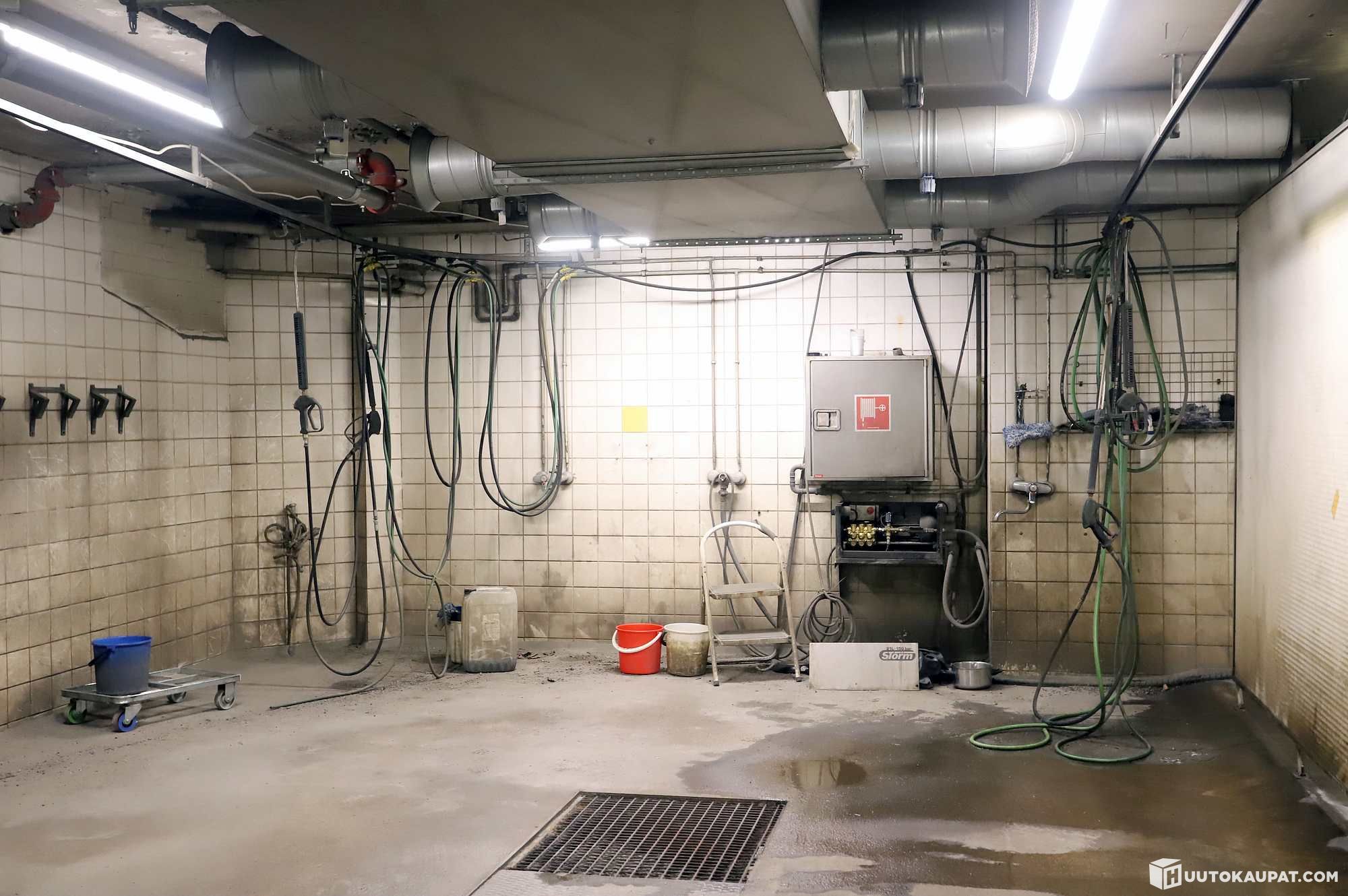 Kahden autopesupisteen pesurit, pumput, tavarat.