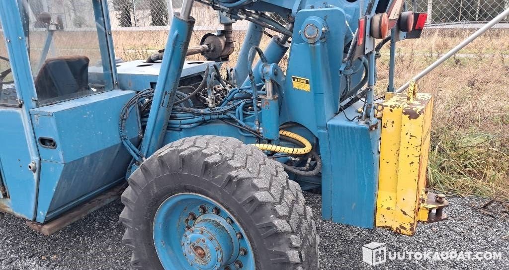 Huutokaupataan astetta tai kahta jämerämpi amerikanrauta. Erittäin maastokelpoinen nelivetonsa ja napalukkojensa ansiosta. 180 astetta kääntyvä haarukkakelkka, kääntösäde 18 cm(sisäpuolinen), rungon kallistus, ja sokerina pohjalla langaton kauko-ohjaus. Käyttöohjeet, esite, varaosakuvasto ja jopa vara-avain tallella. Mukaan tulee lisäksi laatikollinen varaosia(tiivisteitä, venttiilikaroja) ja trukkipiikkien , kauhan(huono), henkilökorin lisäksi varapyörä ja sovite haarukkakelkkaan