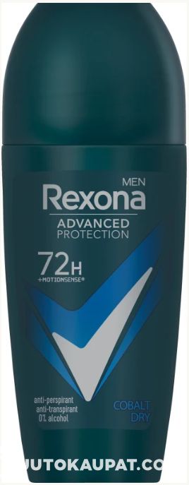 Rexona Advanced Protection Cobalt Dry -deo roll-on antiperspirantti antaa suojan hikeä ja epämiellyttävää hajua vastaan jopa 72 tunniksi. Ainutlaatuisen MotionSense-teknologian ansiosta Rexona Cobalt Dry -antiperspirantti tarjoaa raikkautta, joka kestää tunnista toiseen.