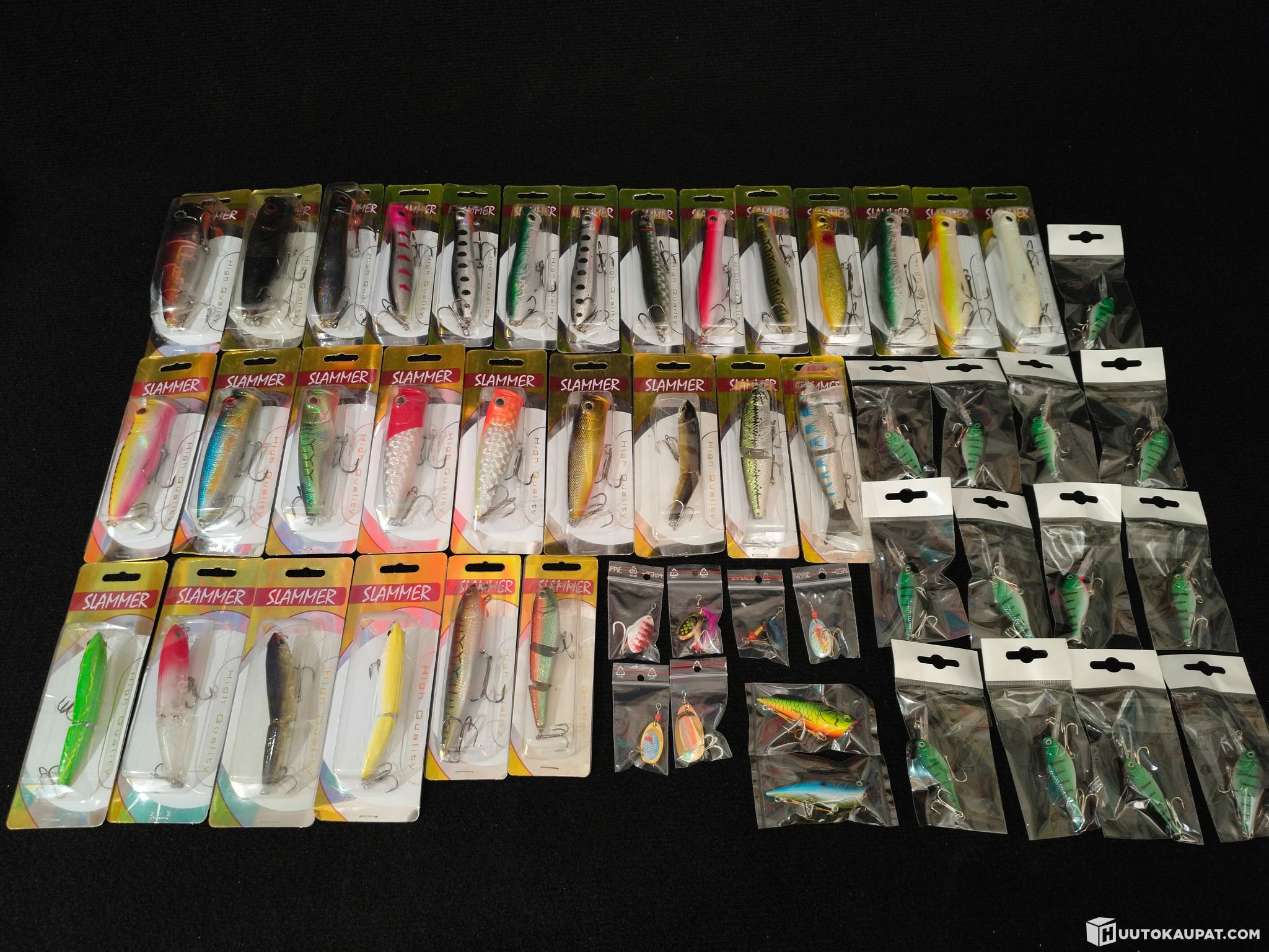 50 kappaleen viehe-erä, joka sisältää useita erilaisia malleja ja värejä.