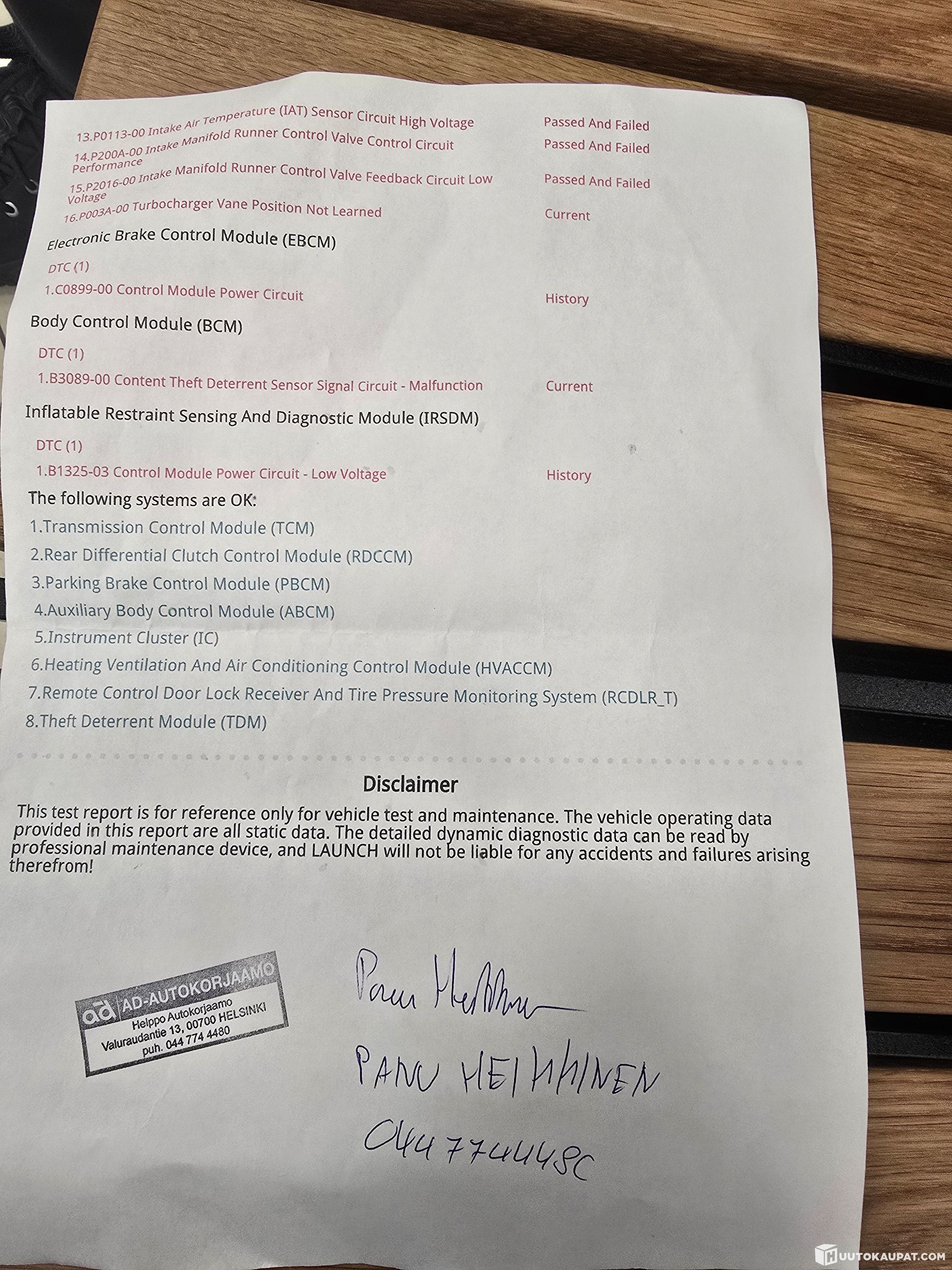 Ajoneuvo on koeajettu toimestamme ja nestepinnat on tarkistettu. Ajoneuvo ei ole ollut toimestamme teknisessä kuntotarkastuksessa eikä kaikkien varusteiden toimivuutta ole testattu.