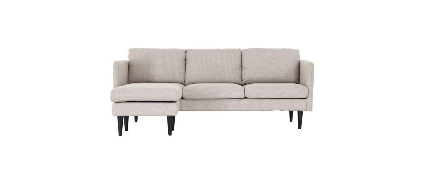 Sohvan verhoilu on tehty kauniista huonekalukankaasta, joka antaa sille hienostuneen ilmeen. Kapeat käsinojat ja kapenevat puujalat viimeistelevät modernin ja kevyen ulkonäön. Beigessä sohvassa on mustat puujalat, kun taas vihreässä ja harmaanruskeassa sohvassa puunväriset jalat.