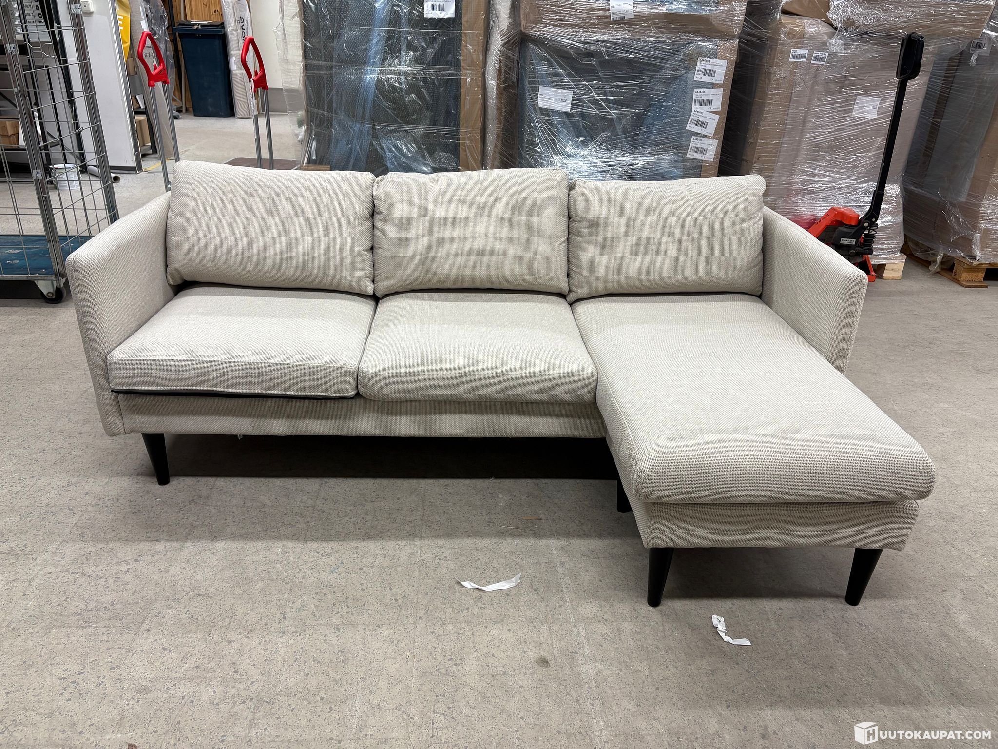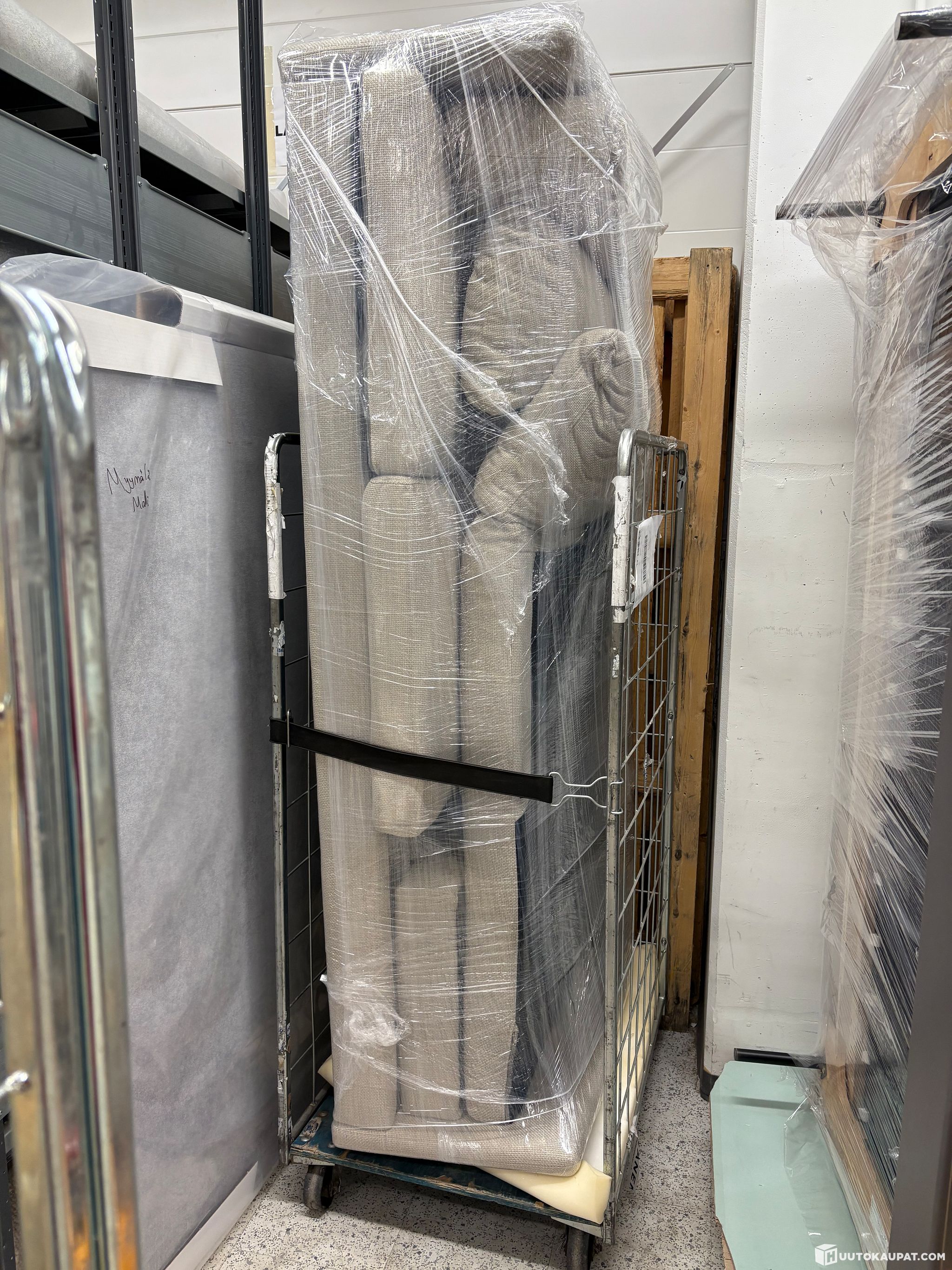 TUOTE ON ASIAKASPALAUTUS. YMPÄRI SOHVAA KARVOJA. SOHVAN REUNOJA RAAVITTU. VARASTOINISSA SYNTYNYTTÄ LIKAA JA PÖLYÄ VOI LÖYTYÄ. KATSO KUVAT.