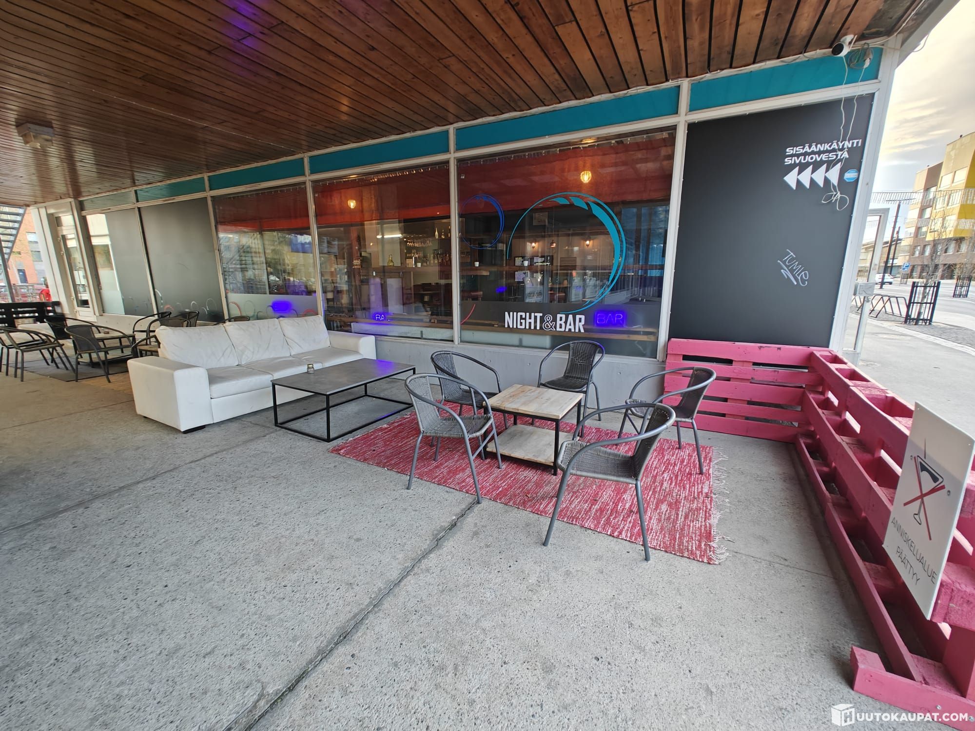 Kuvissa näkyvä loppu baarin irtamisto (irtonaiset kalusteet, astiat, kertakäyttöastiat, matot (monet lähes uusia), kulutustavarat, työkalut ym). Terassikuvista kaikki terassilla ulkona oleva (ei siis mahdollisesti ikkunasta sisällä näkyvä).