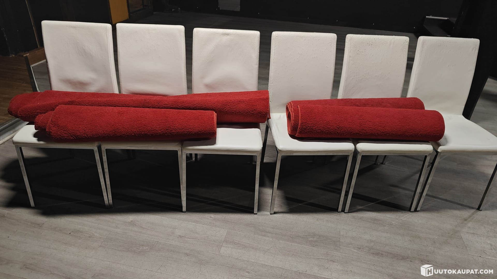 Tavara suoraan käytöstä. Vikoja voi olla. Valkoisten penkkien pinta kulunut ainakin.