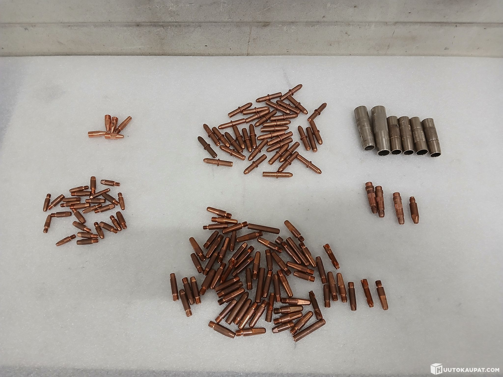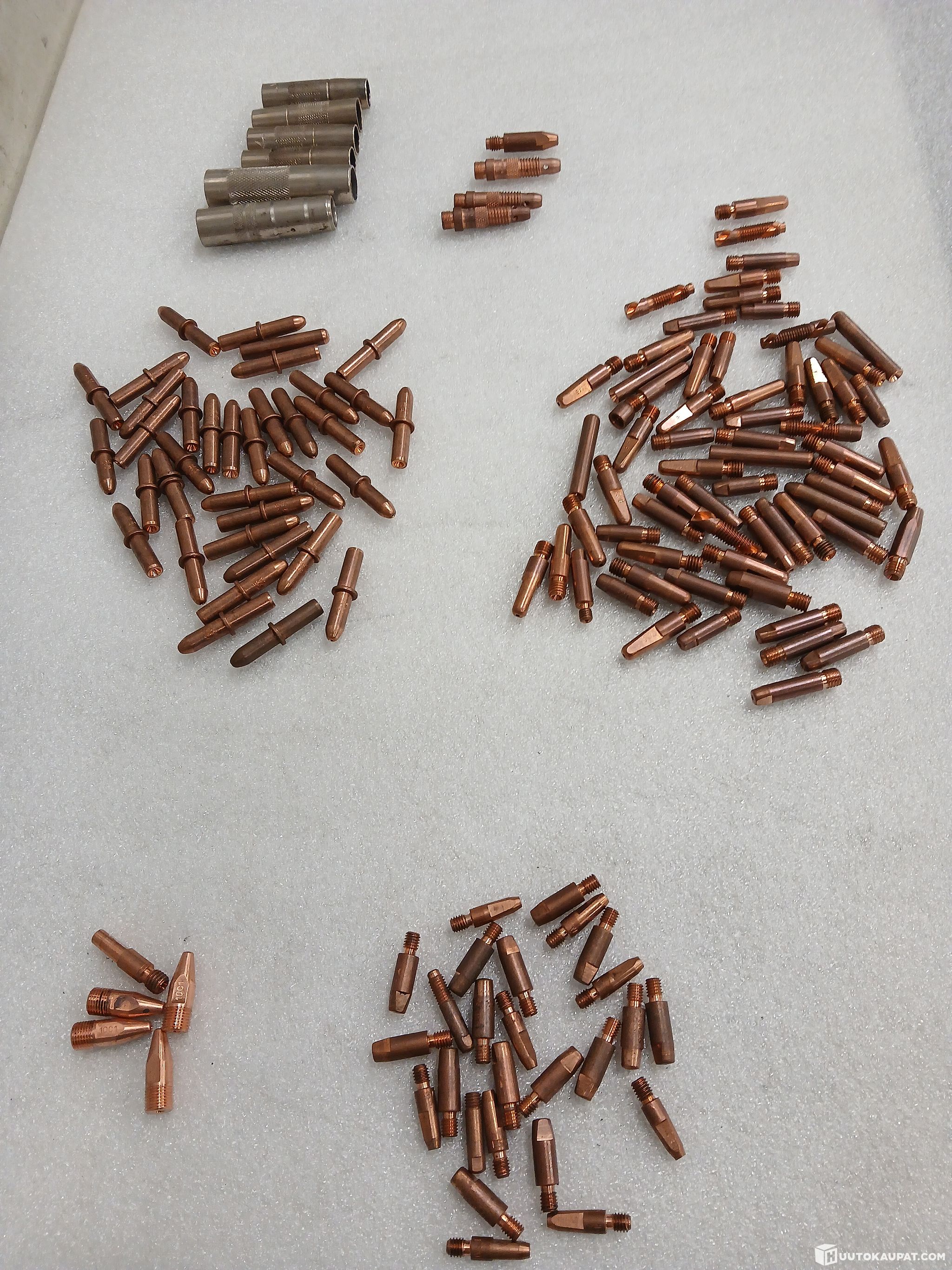 Kuvien erä erilaisia hitsauslanka suuttimia 135 kappaletta.sekä kaasuholkkeja 5 kappaletta.erälle saadaan tarvittaessa järjestettyä kuljetus koko suomen alueella kotipihaan asti toimitettuna.noudettaessa itse kohdetta saadaan noutoajankohta järjestymään joustavasti myös iltaisin ja viikonloppuisinkin.noudosta ei peritä mitään noutomaksuja/noutokuluja.noudolla ei myöskään ole kiirettä saadaan sovittua todella joustavasti tarvittaessa.