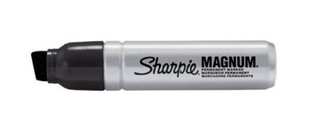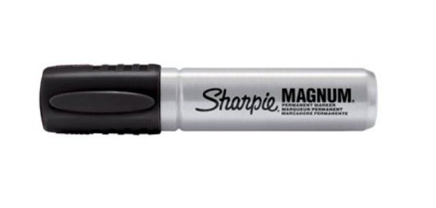 "Sharpie Marker Magnum 44 -huopakynässä on viisto kärki ja musta jälki."