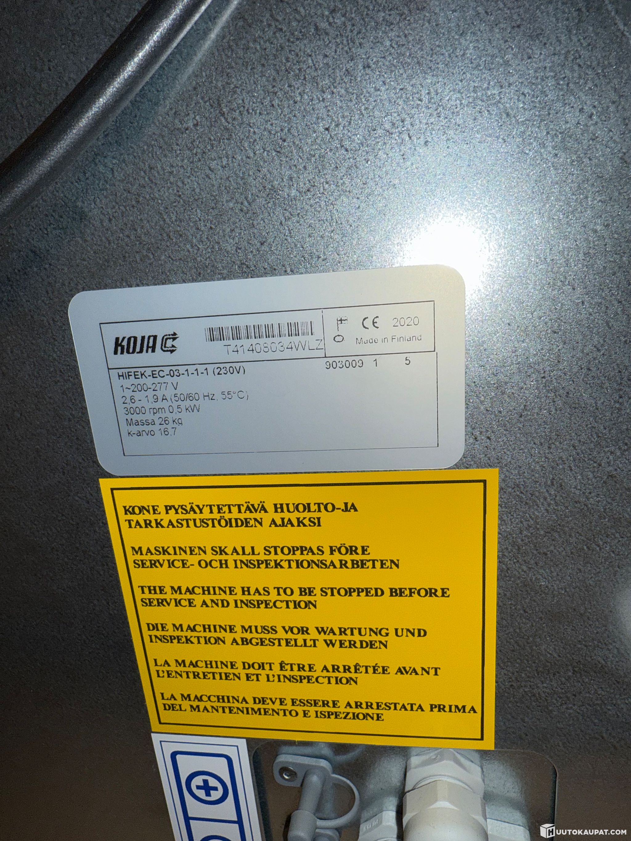 Koja hifek eco 03 huppuimuri, sis asennuskehyksen ja tarvikkeet.