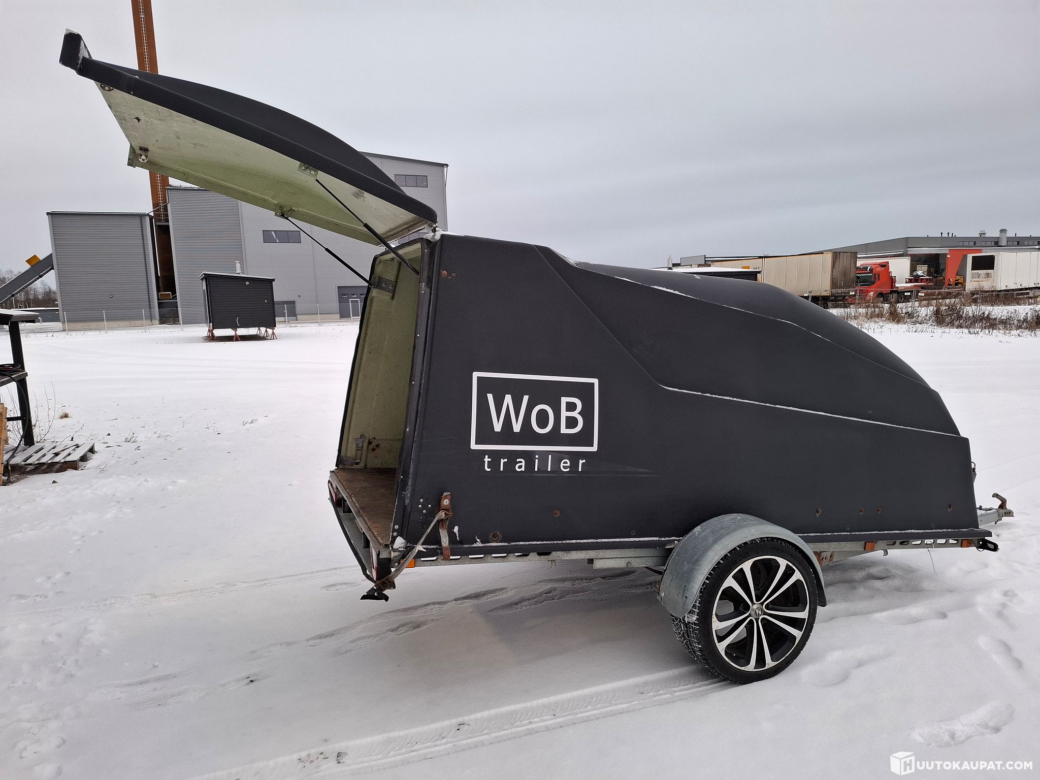 Tästä liukaskulkuinen perävaunu. Mahtuu hyvin kelkka ja mönkkäri kyytiin. Loistava kärry esim. Sähköauton perään hyvän muotoilunsa vuoksi (alhainen ilmanvastus)