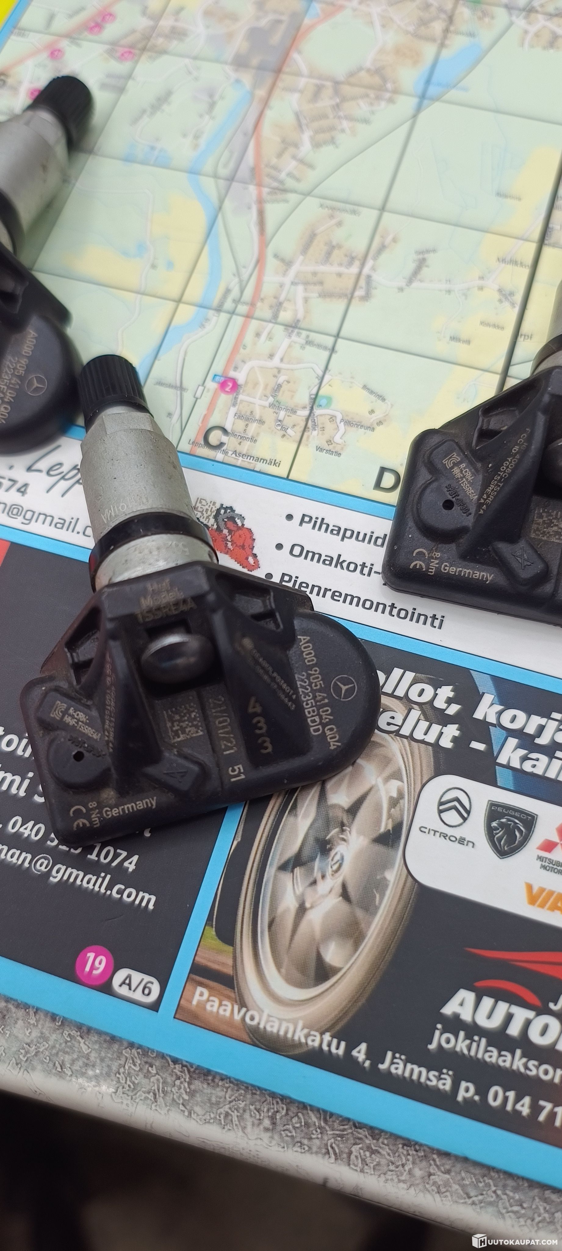 Myynnissä kuvien TPMS-anturit. Osanumero A000 905 41 04 004. Toimivuus testattu, laaja sopivuus. Luettelo alla.