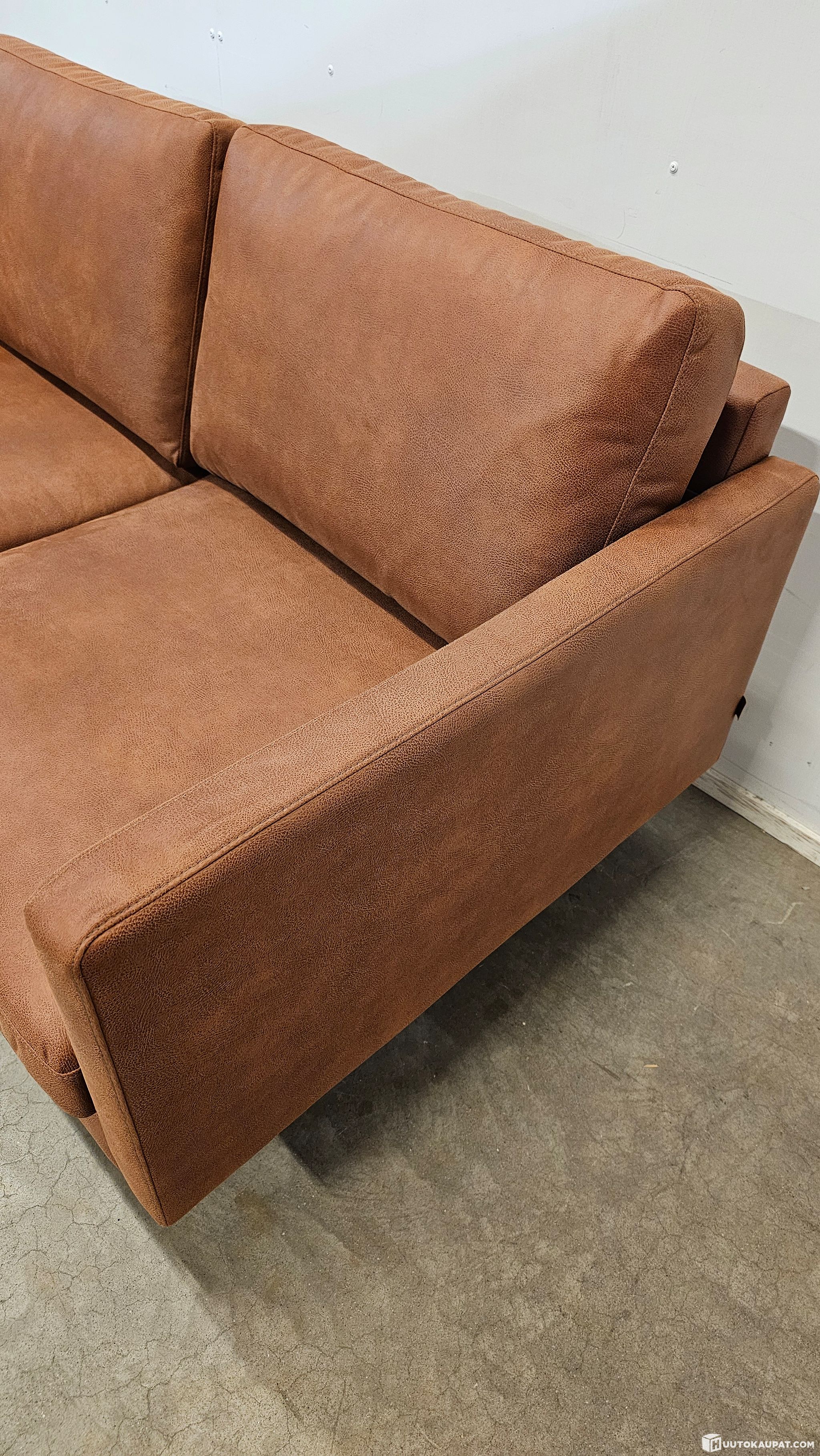 Hoito-/pesuohje teksti Imurointi ja tahrojen pyyhkiminen heti tuoreelta pehmeällä kostealla liinalla. Mikäli sohvaan on kertynyt pinttynyttä likaa, voidaan sen puhdistukseen käyttää vesipohjaista nahanpesuainetta. Sohva kannattaa suojata heti uutena ja säännöllisin väliajoin vesipohjaisella nahan suoja-aineella. Bonded nahkaisiin tuotteisiin suositellaan käytettäväksi ainoastaan vesipohjaisia puhdistus- ja suoja-aineita. Selkätyynyt on suositeltavaa pöyhiä säännöllisesti.