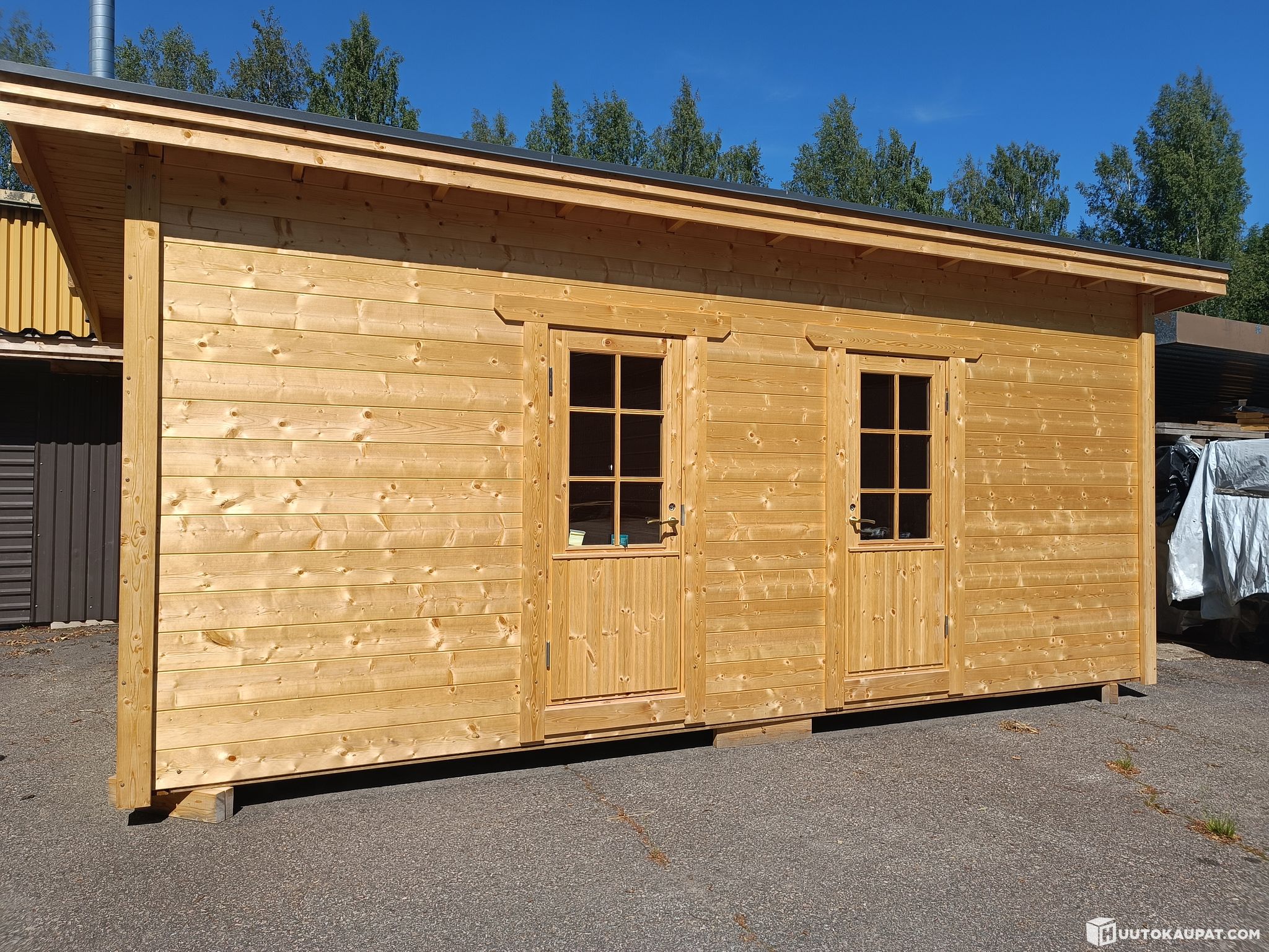 Täysin käyttövalmis hirsiseinäinen 18m2 PariAittarakennus. Koko n. 6x3m,