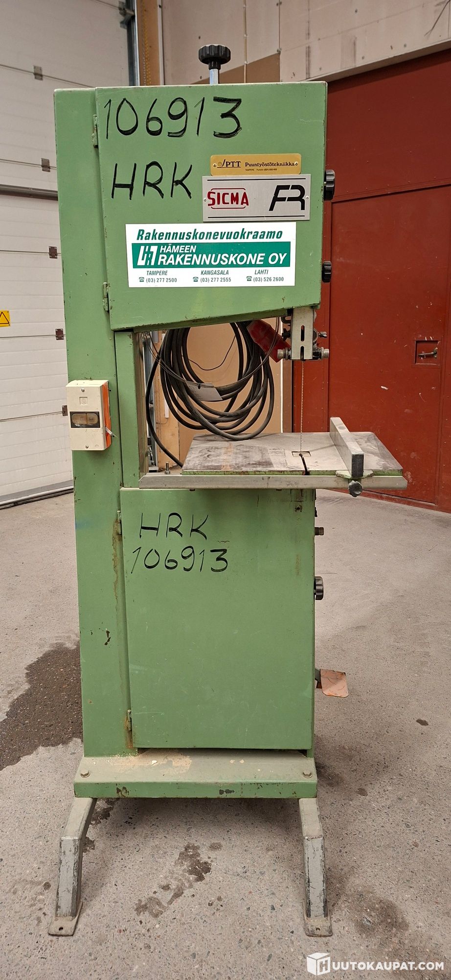 Vuokrakäytöstä poistettava vannesaha, uutena hankittu Puuntyöstötekniikalta vain yhtä suurempaa työmaata varten. Vuokrapäiviä laitteella takanaan ainoastaan 389 vrk. Testattu pikaisesti 16.12.2025 ja käyntiin lähti. Ollut useita vuosia turhan panttina ja varastoituna lämpimässä kuivassa tilassa.Laite tehty ihmistä varten, ei mitään ihmeellisiä hilavitkuttimia.