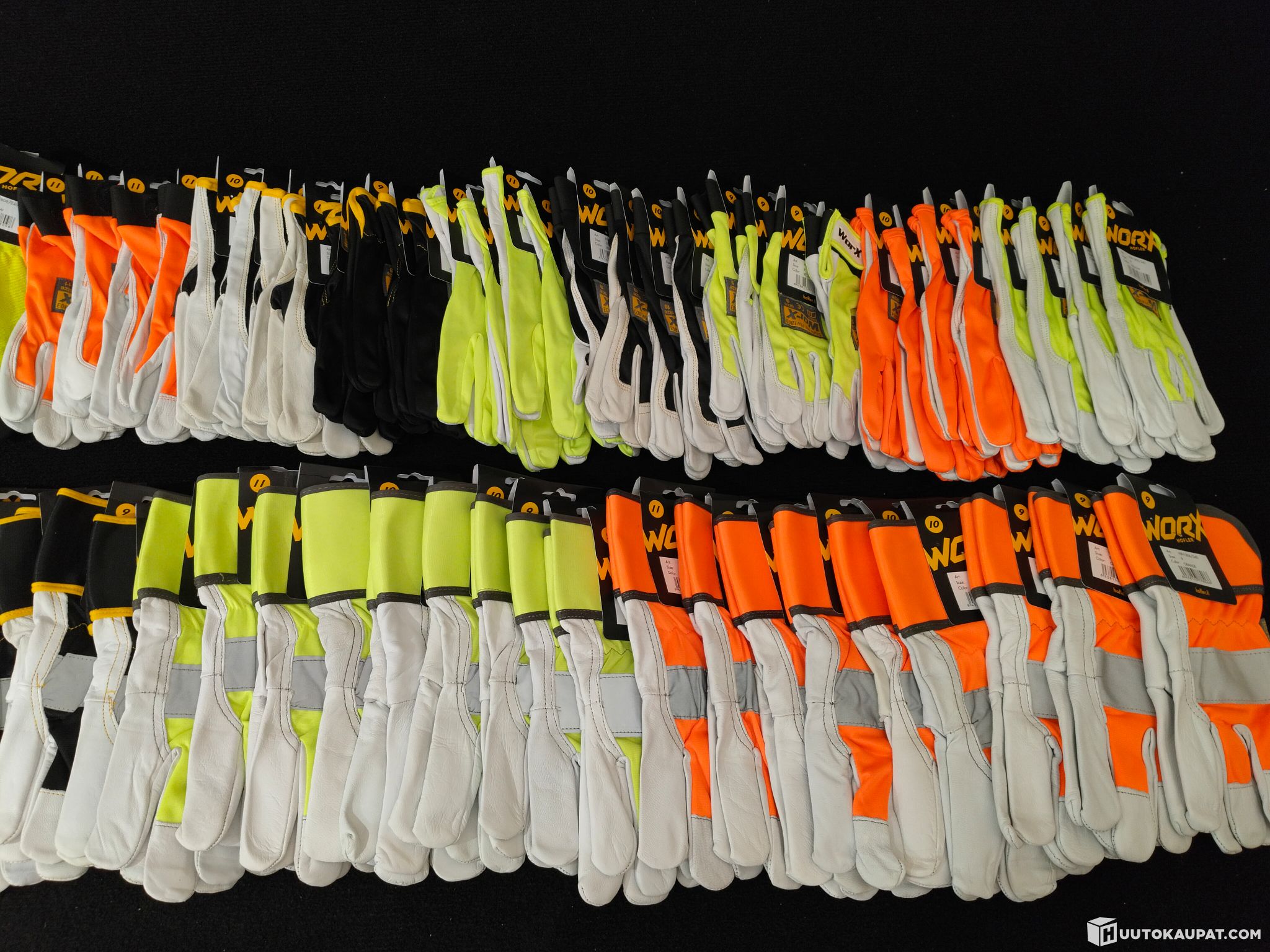 Uudet Worx-merkin työ- ja turvahanskasatsi. Yhteensä 73 paria.