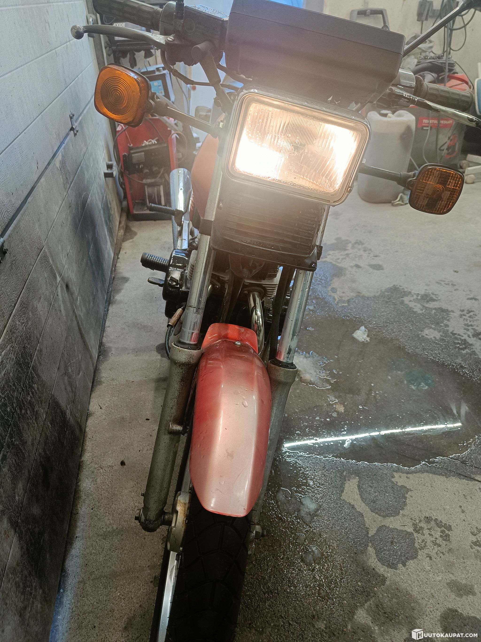 Ajeltu viimekesänä noin 200km,nopeusmittarin vaijeri ilmeisesti poikki .muuten toimiva .akku heikohko mutta starttasi kesällä hyvin käyntiin.