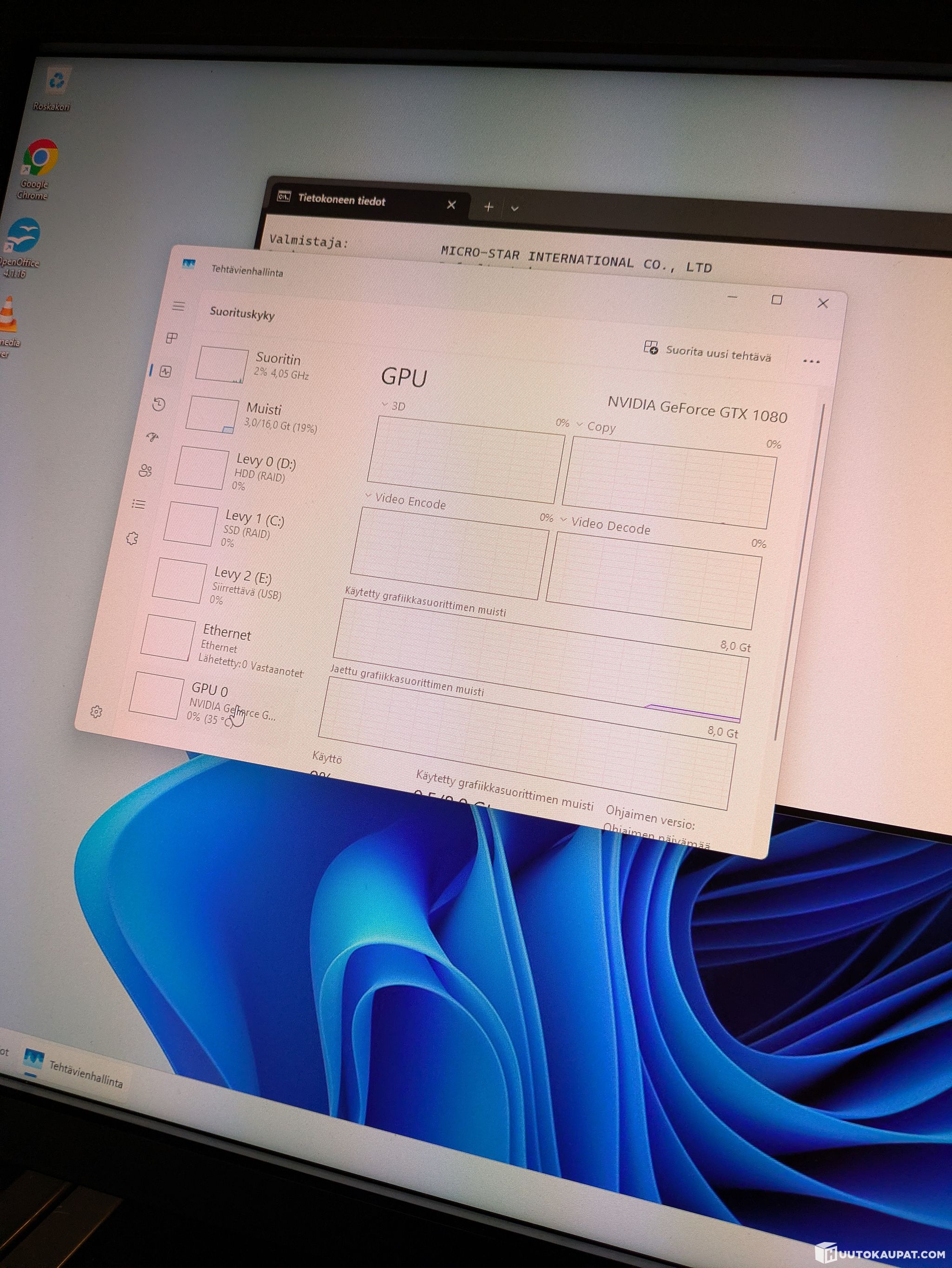 Näytönohjain: NVIDIA GeForce GTX 1080 (8 GB)