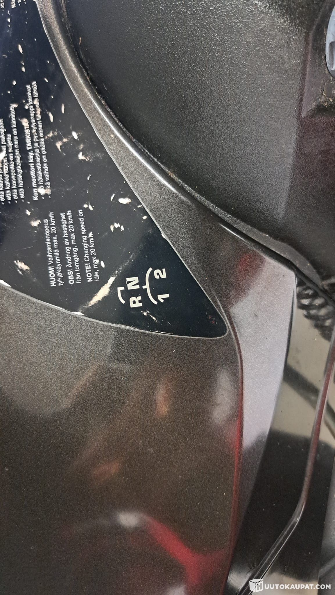 Vanha paljon ajettu työkelkka joten normaalia kulumaa/vaurioita/jälkeä. Penkissä ainakin nahka rikki.