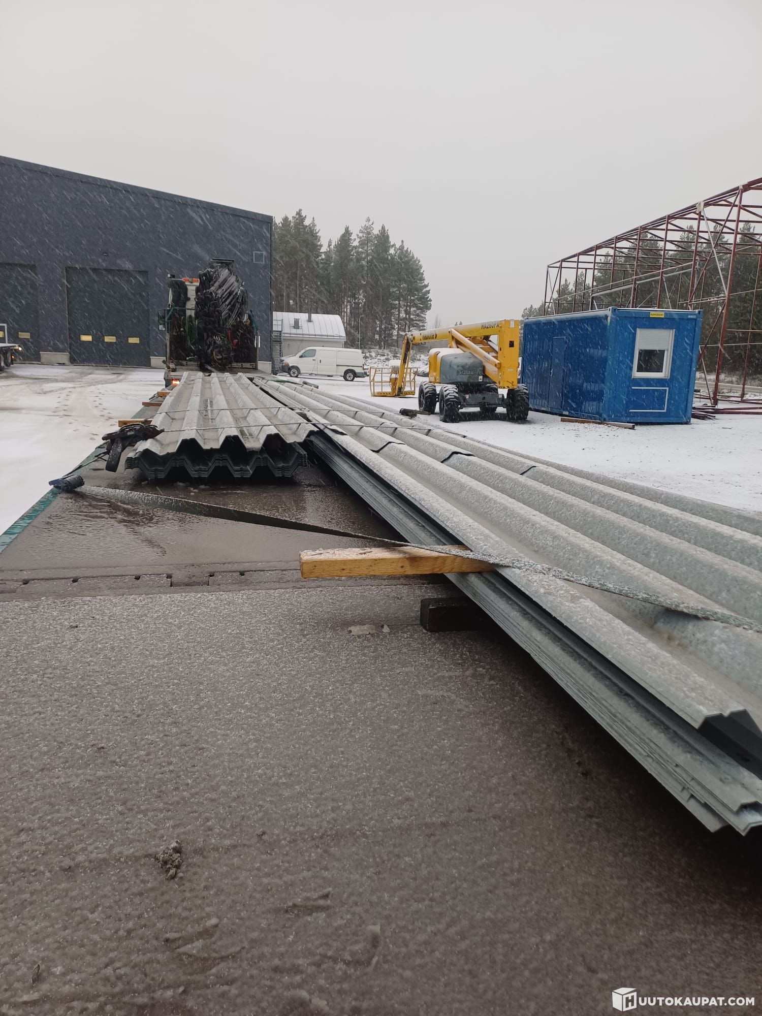 Uudet kattopellit, joihin on porattu reiät väärään kohtaan, joten pellissä on ylimääräisiä reikiä. Uuden hinta noin 10 000 €. Määrä yhteensä n. 50 kpl, osa 9m ja osa 12m + myös joku pienempi pala