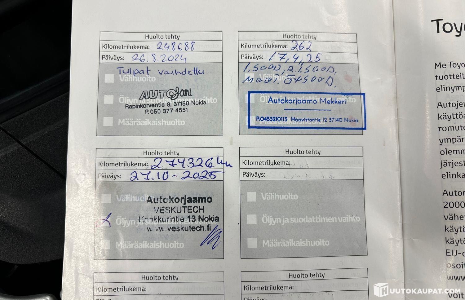 Huollot: Auto on oikein hyvin huollettu, huoltokirja kuvattuna.